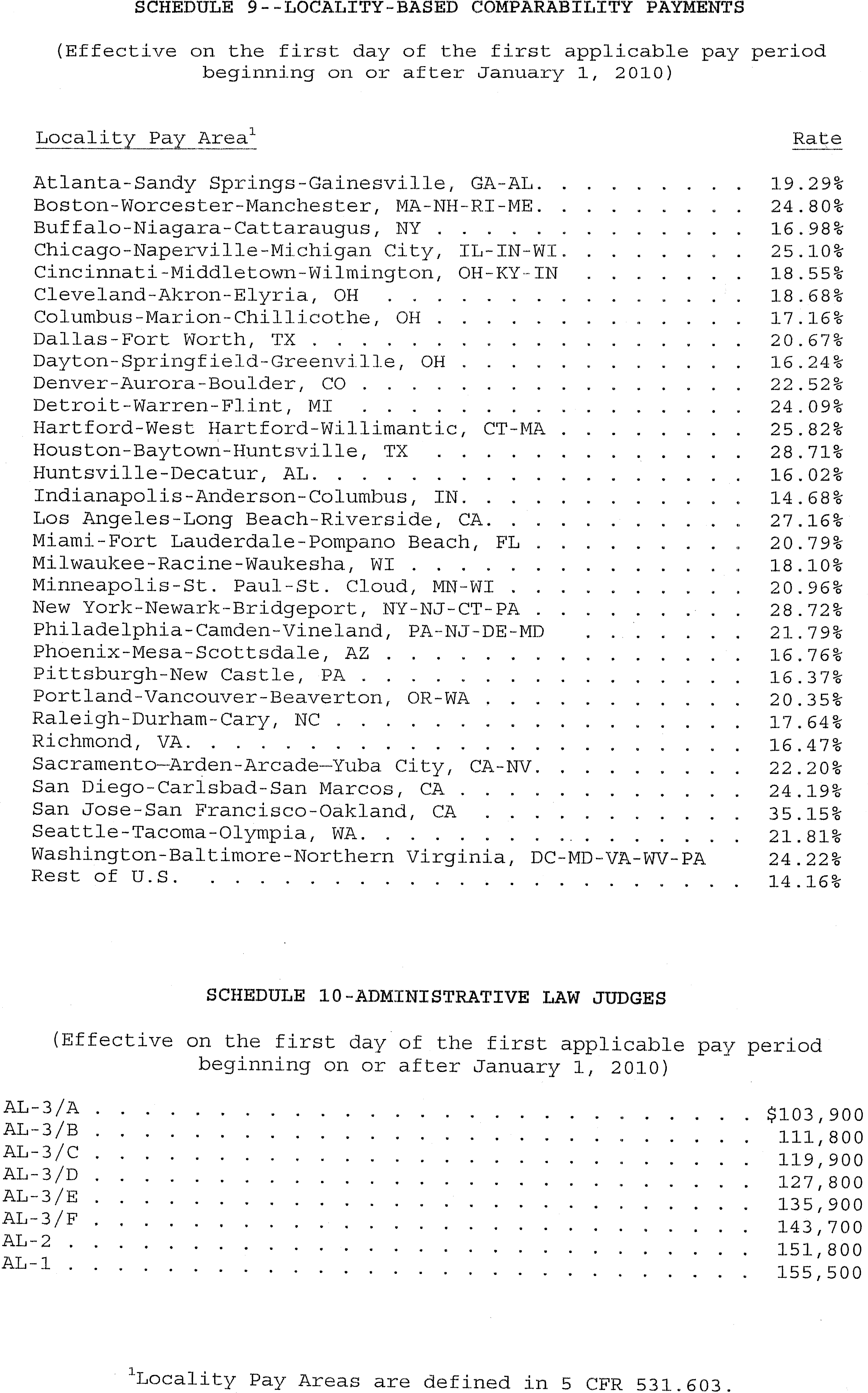Sec. 6. Administrative Law Judges. The rates of basic pay for administrative law judges, as adjusted under 5 U.S.C. 5372(b)(4), are set forth on Schedule 10 attached hereto and made a part hereof.