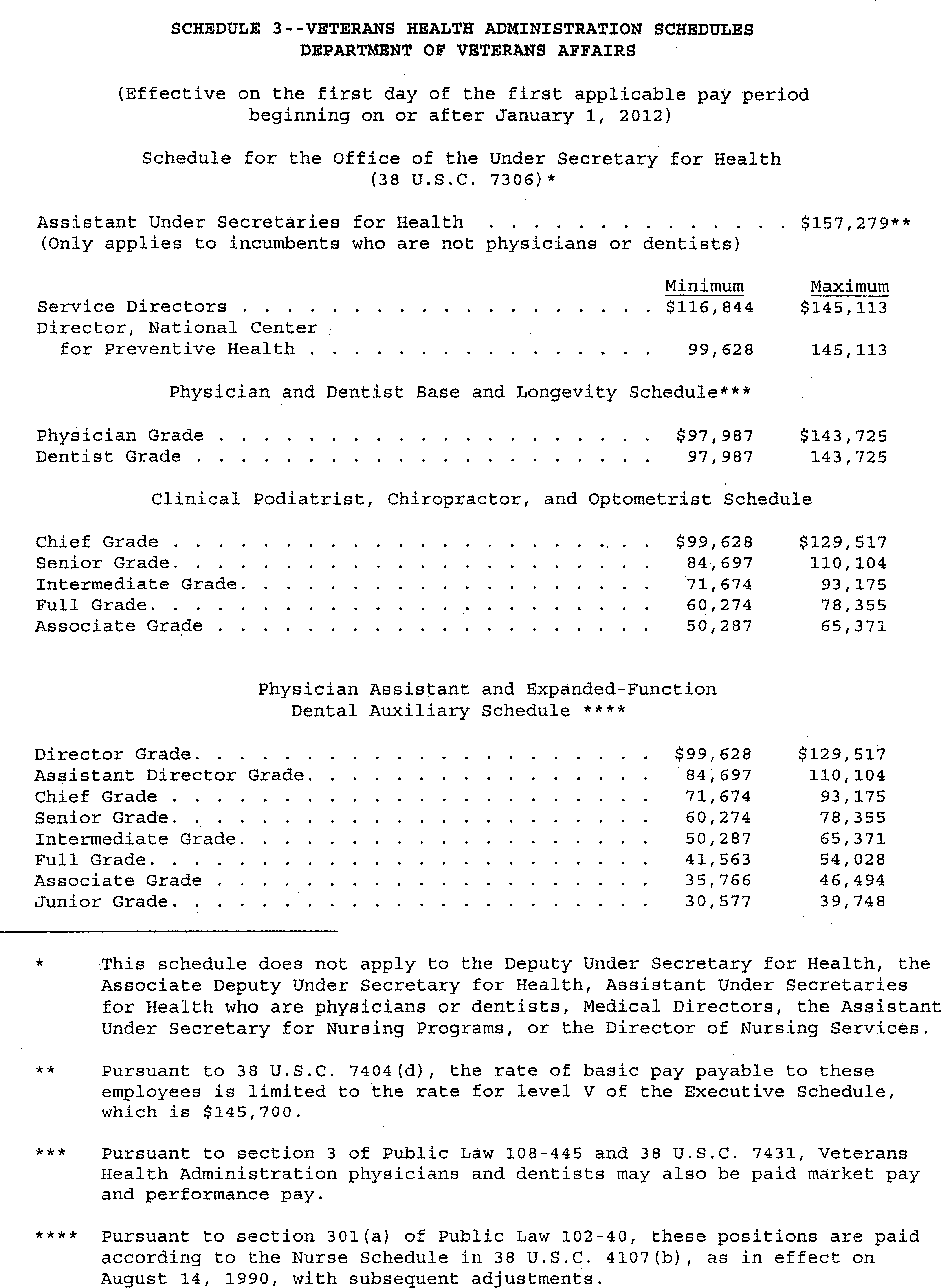 (c) The schedules for the Veterans Health Administration of the Department of Veterans Affairs (38 U.S.C. 7306, 7404; section 301(a) of Public Law 102-40) at Schedule 3.