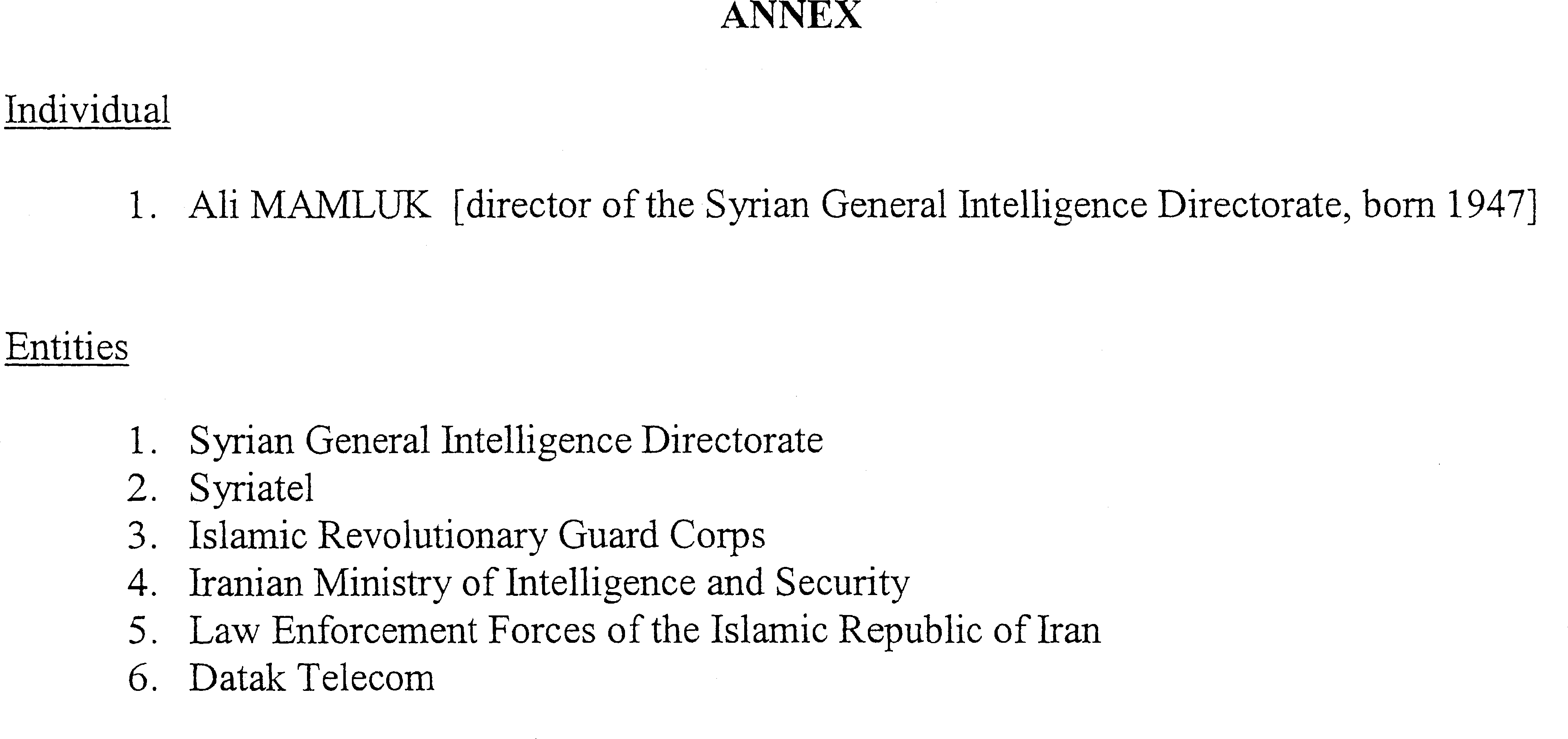 (i) the persons listed in the Annex to this order; and