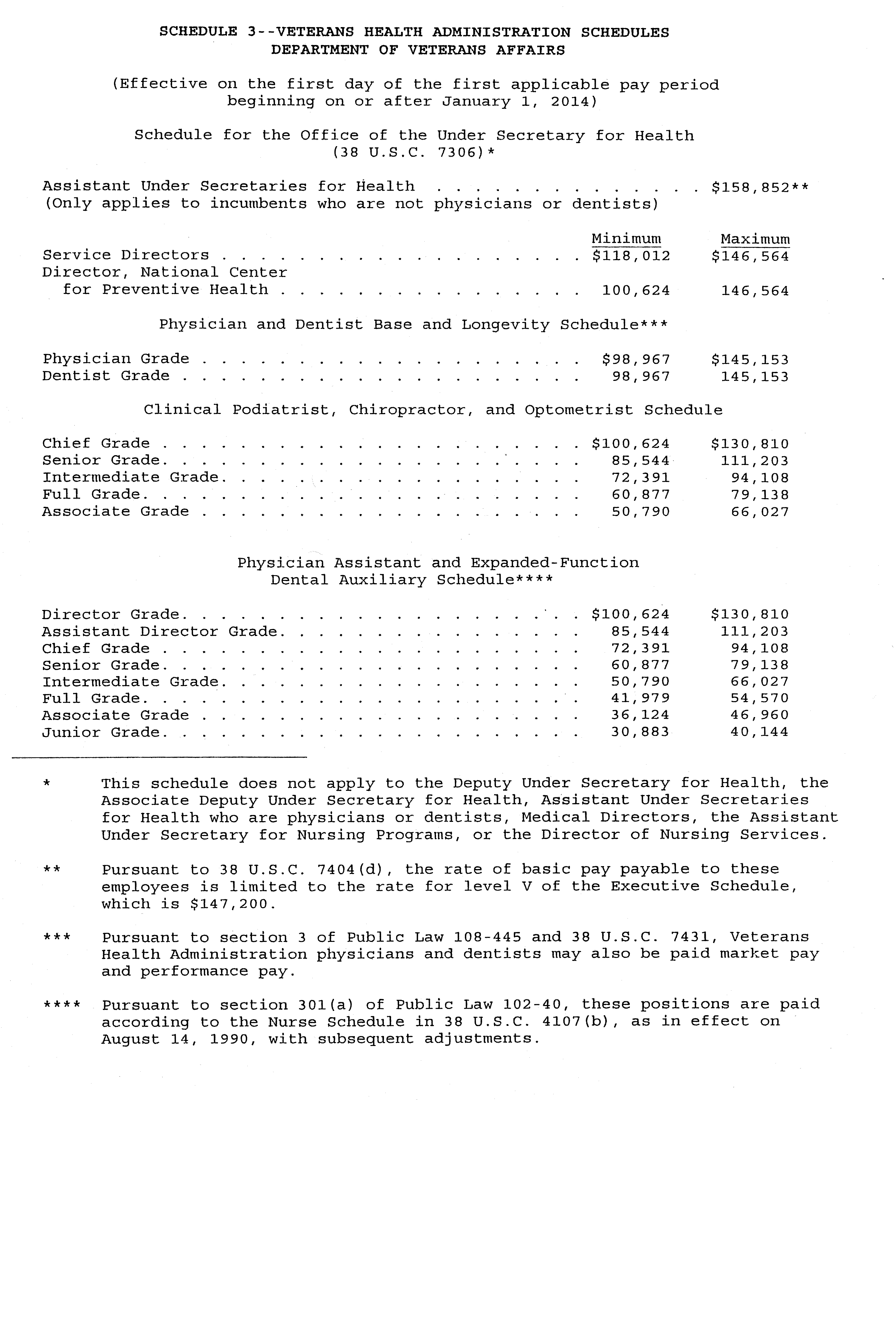 (c) The schedules for the Veterans Health Administration of the Department of Veterans Affairs (38 U.S.C. 7306, 7404; section 301(a) of Public Law 102-40) at Schedule 3.