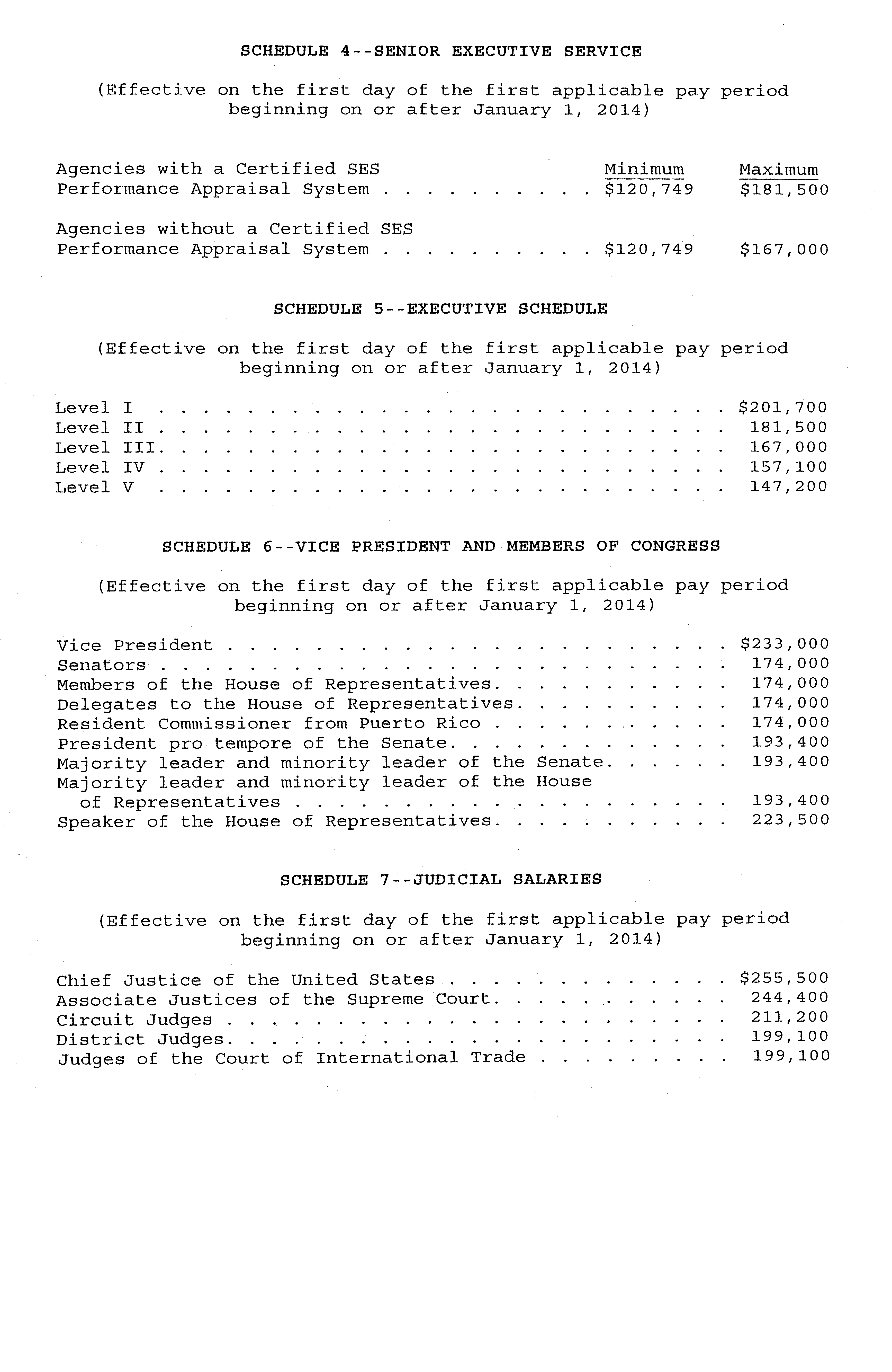 Sec. 2 . Senior Executive Service. The ranges of rates of basic pay for senior executives in the Senior Executive Service, as established pursuant to 5 U.S.C. 5382, are set forth on Schedule 4 attached hereto and made a part hereof.