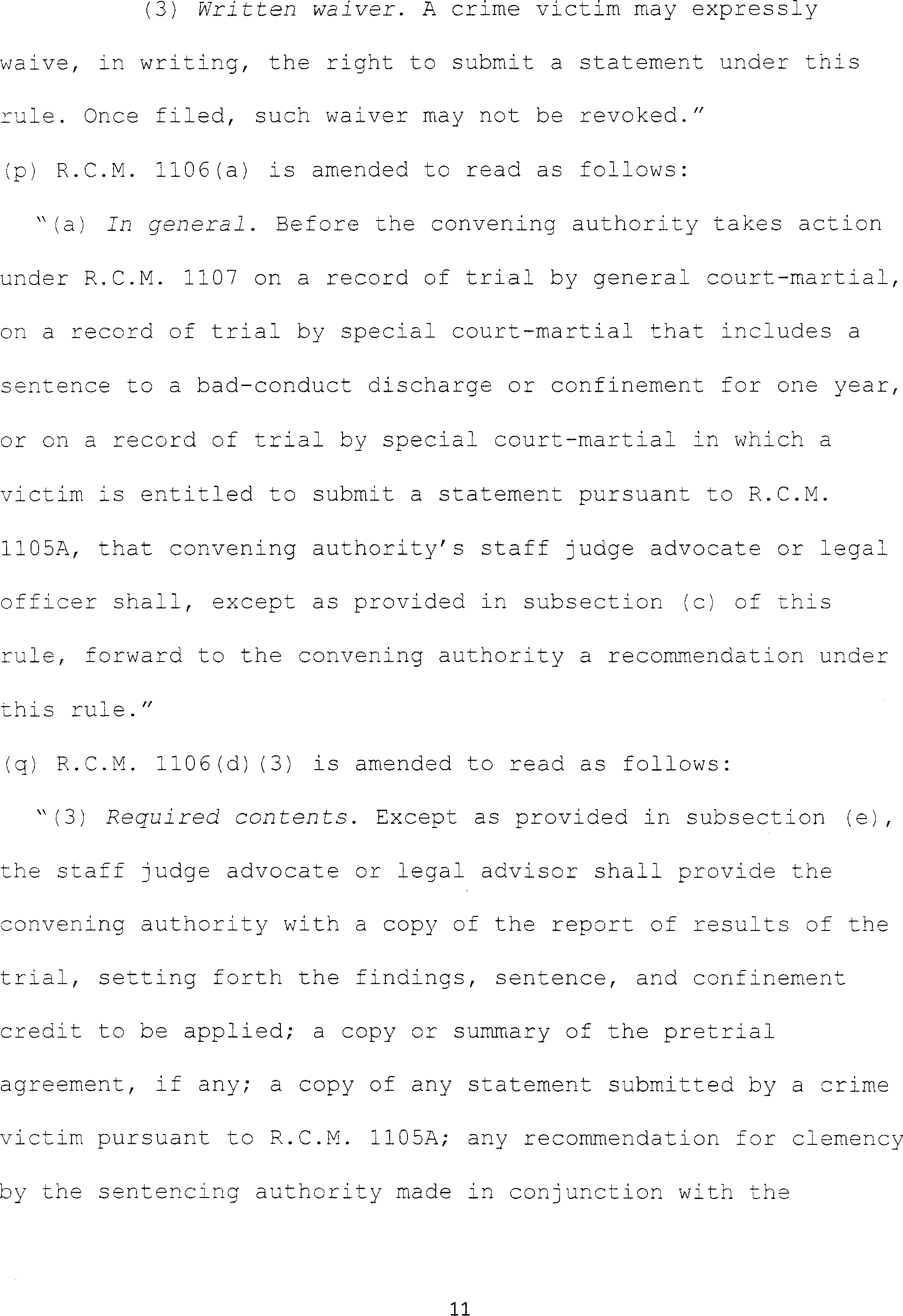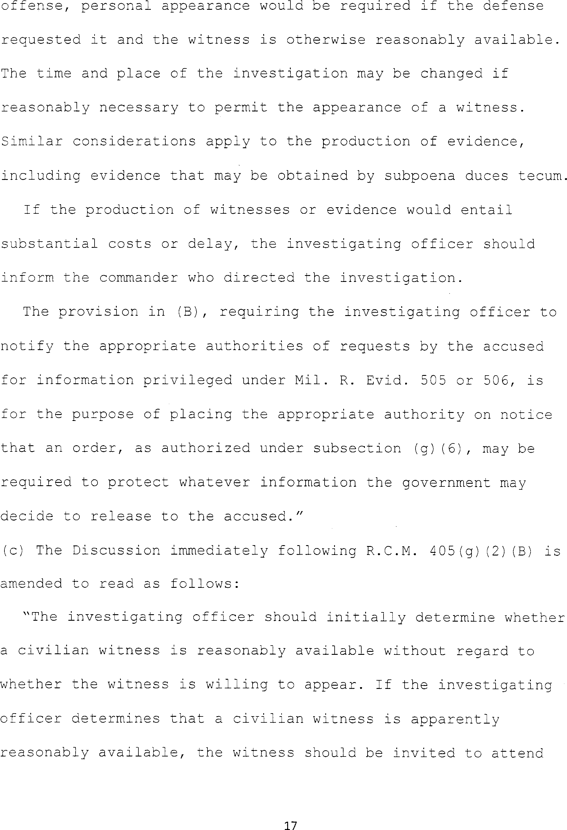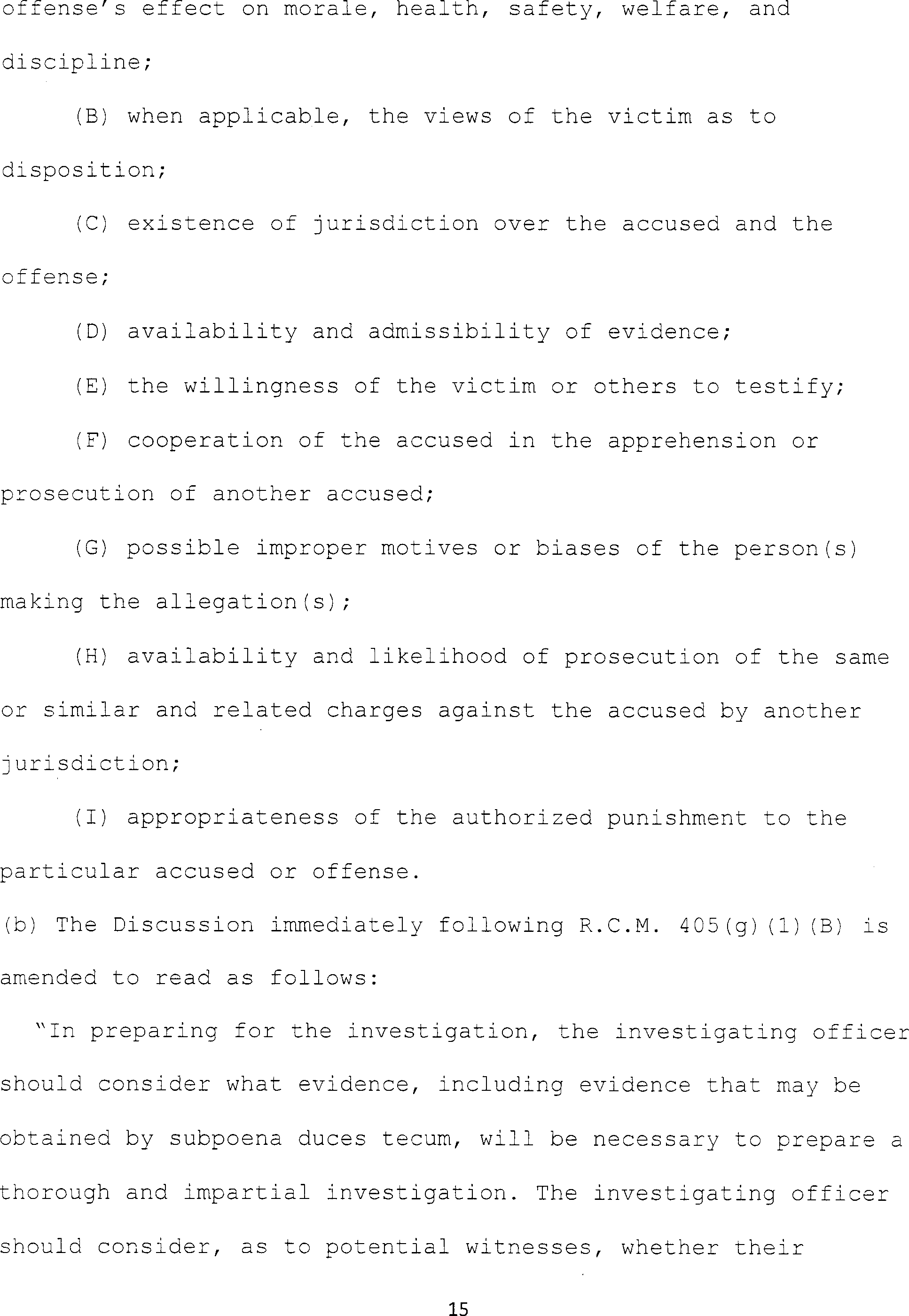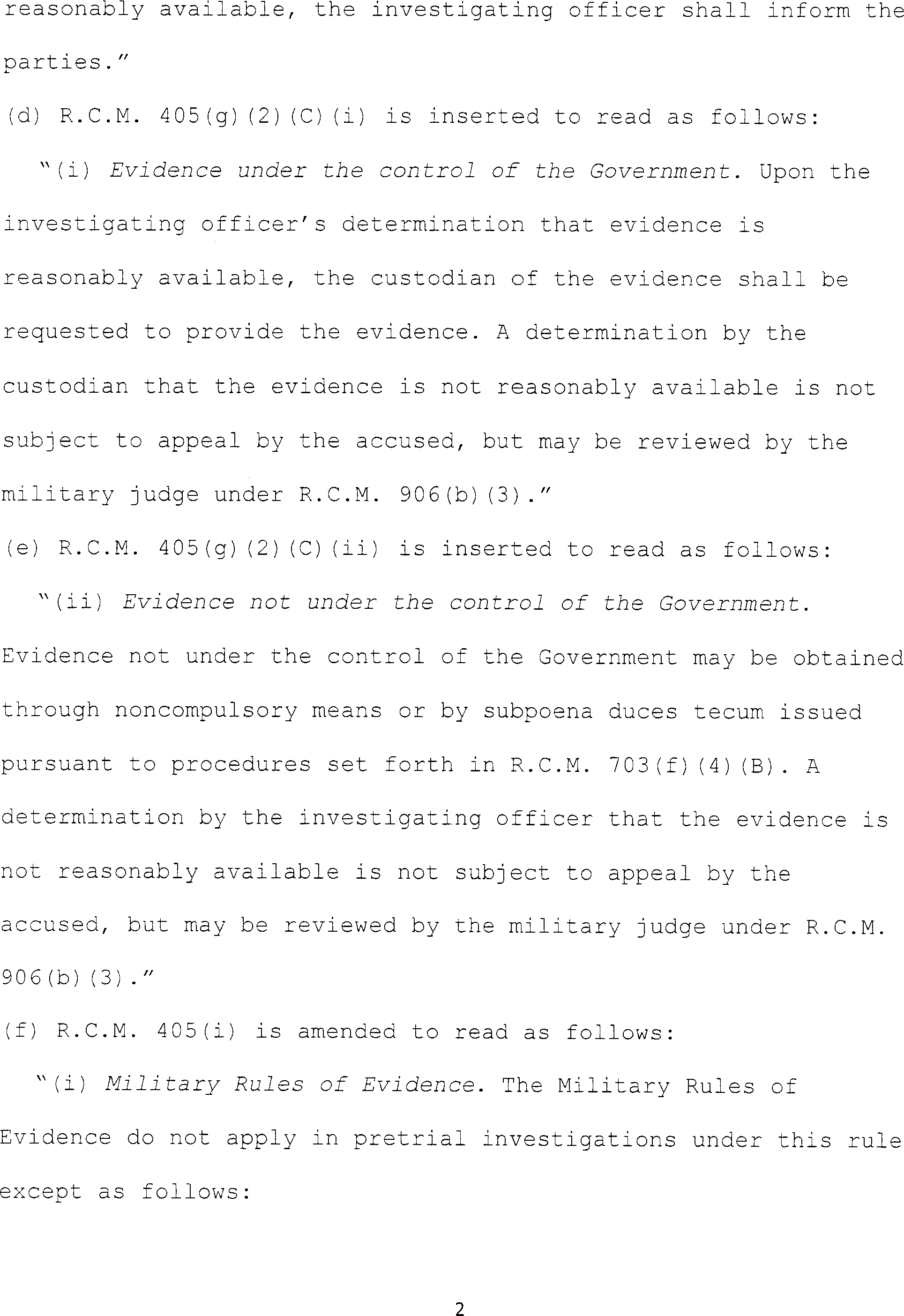 Section 1 . Part II, the Discussion for Part II, and the Analysis for Part II of the Manual for Courts-Martial, United States, are amended as described in the Annex attached and made a part of this order.