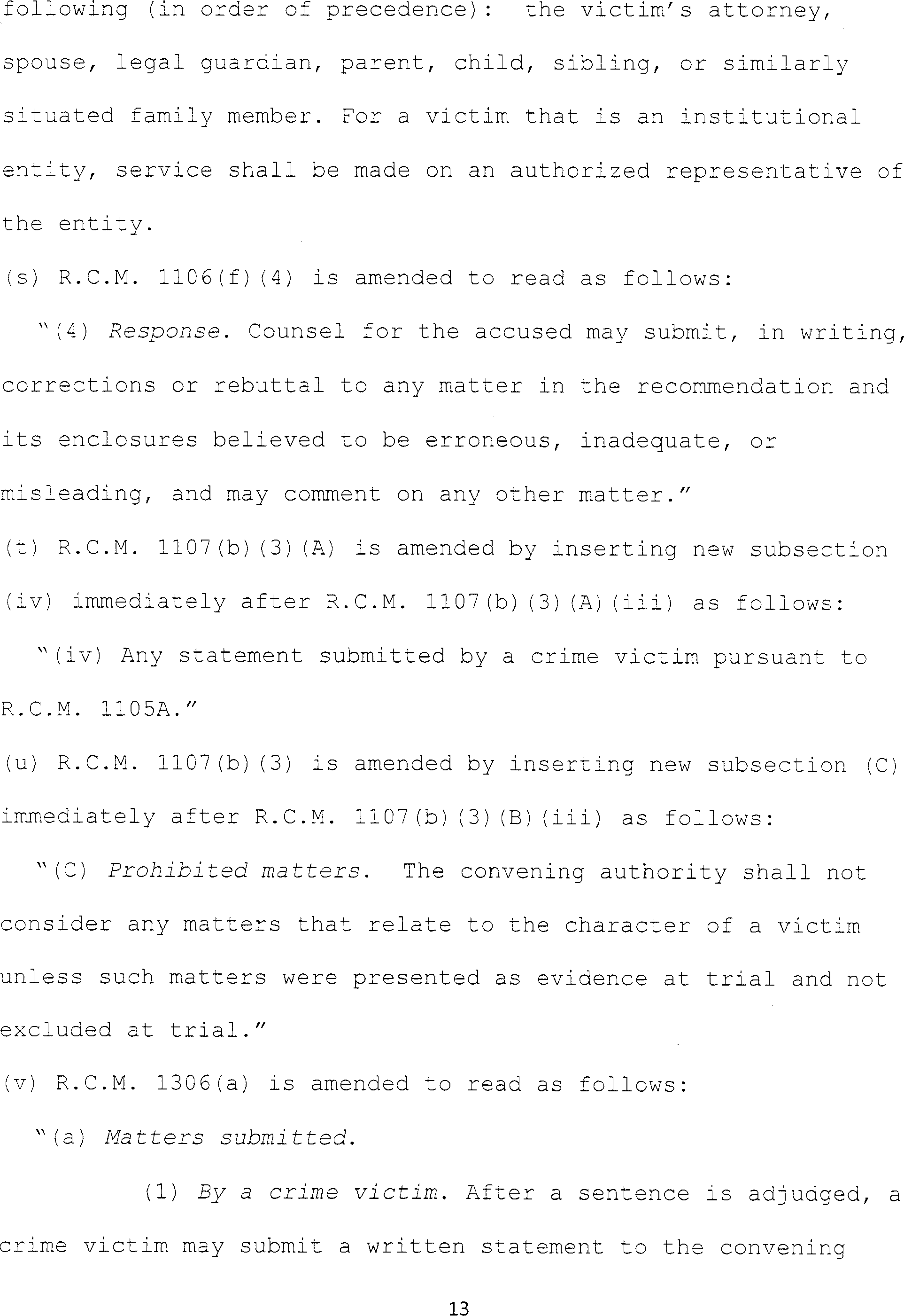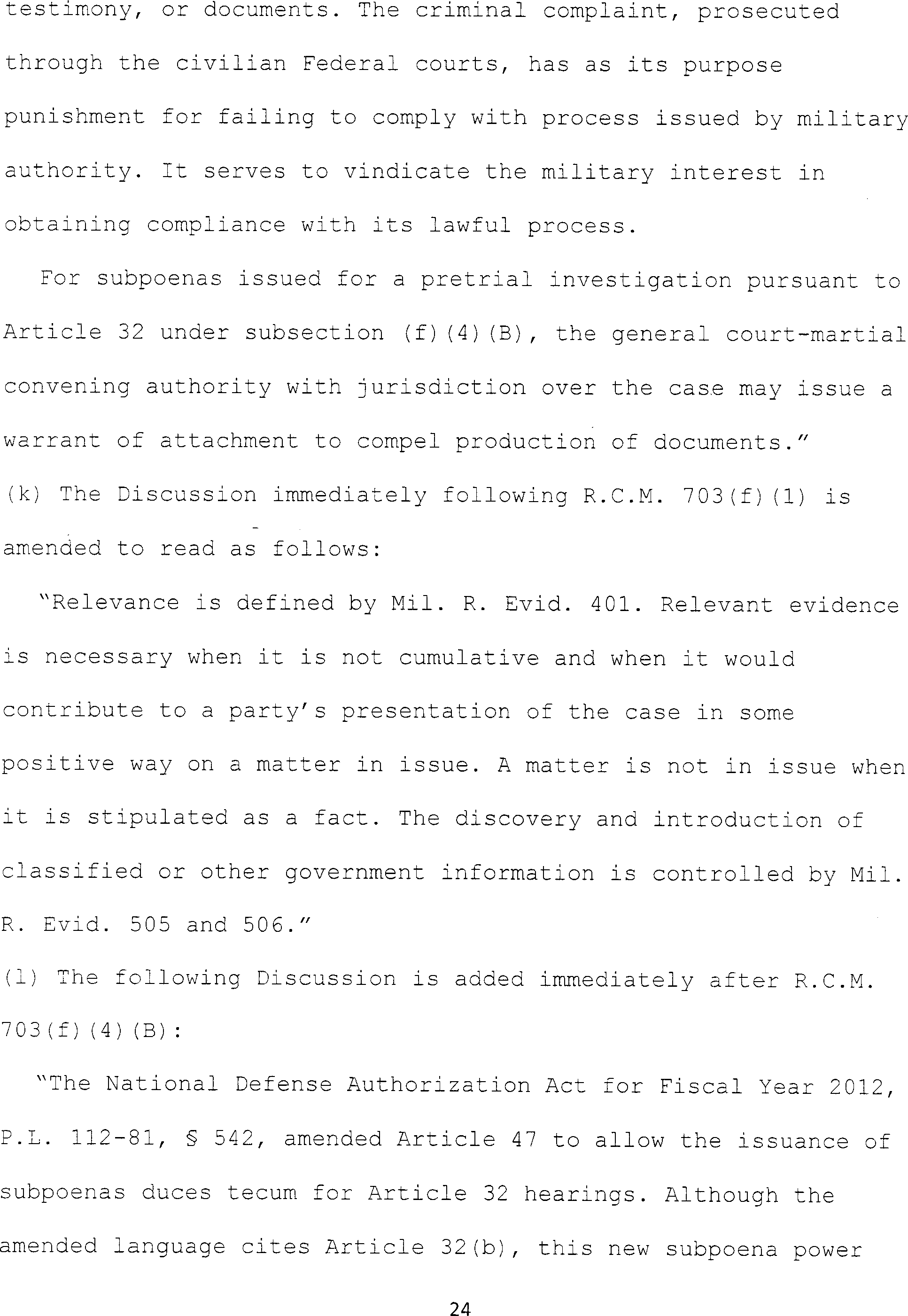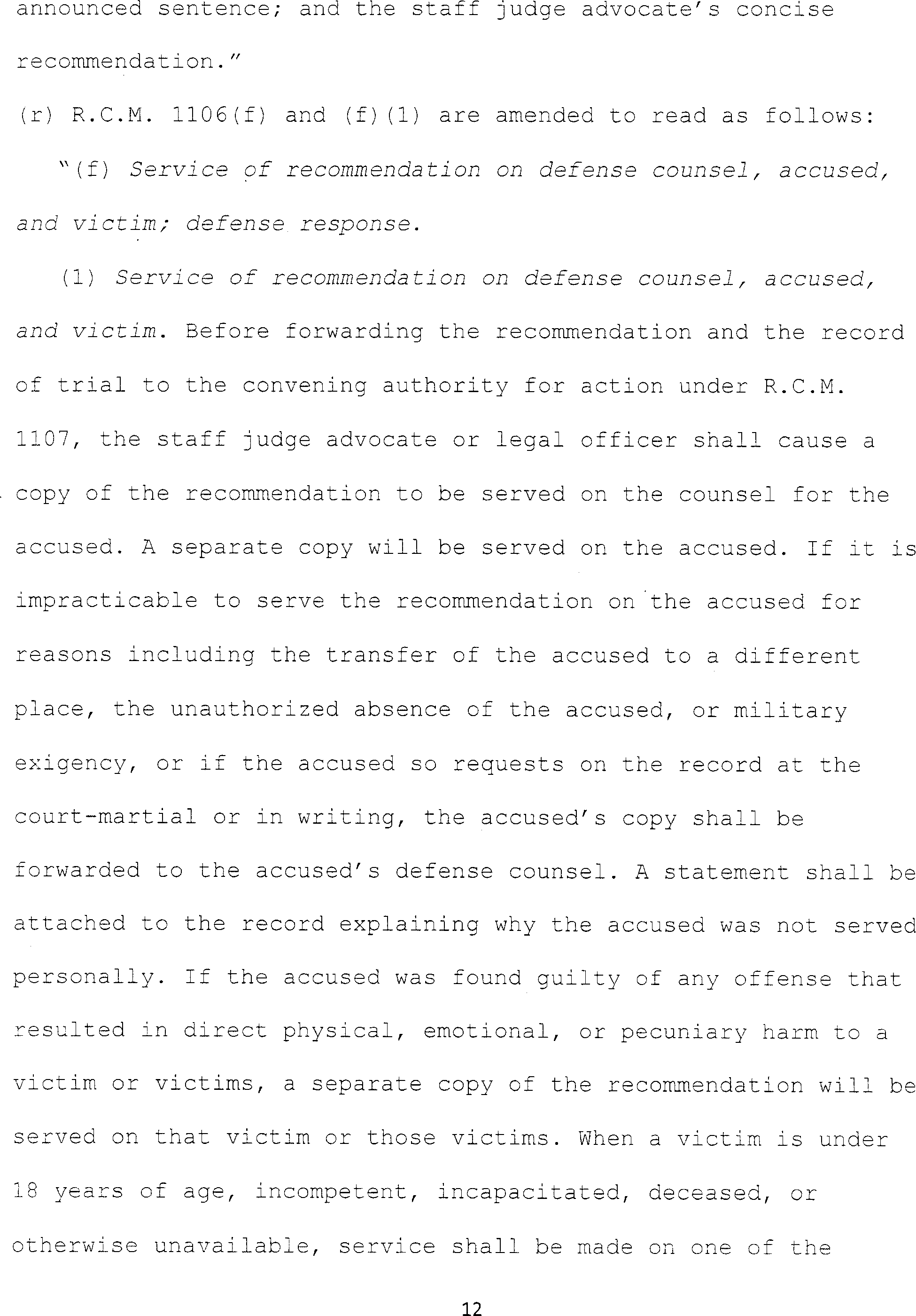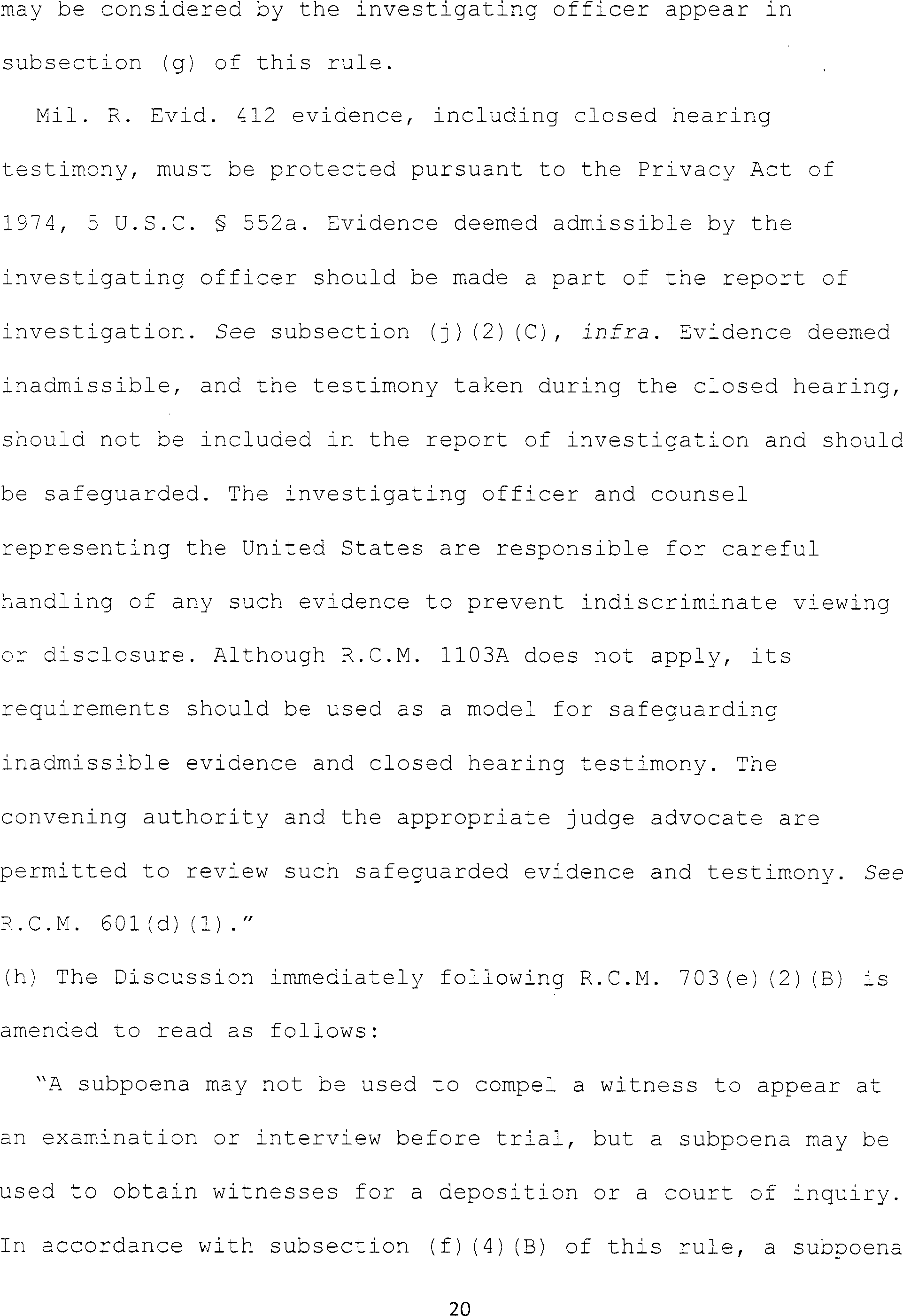 Section 1 . Part II, the Discussion for Part II, and the Analysis for Part II of the Manual for Courts-Martial, United States, are amended as described in the Annex attached and made a part of this order.
