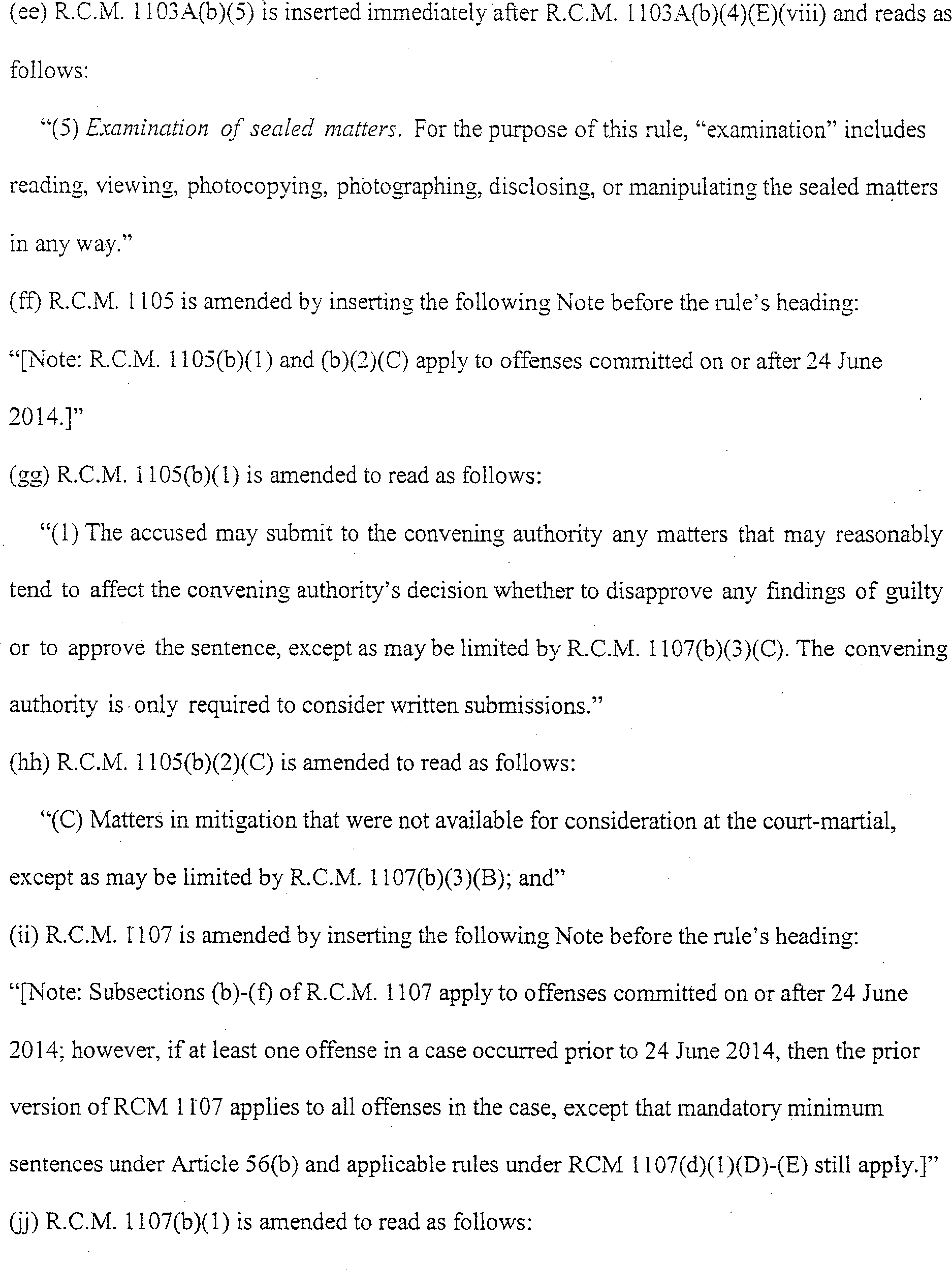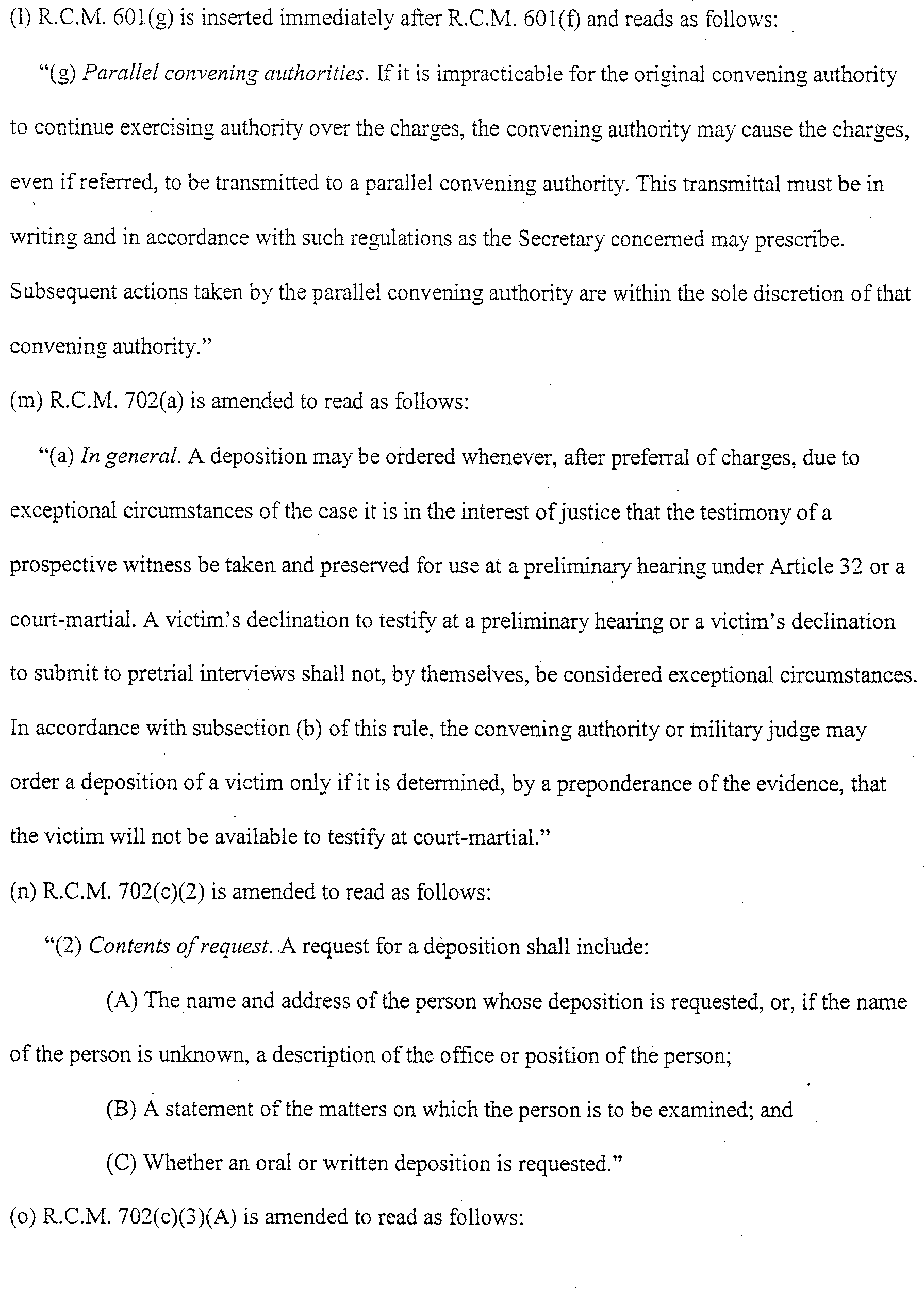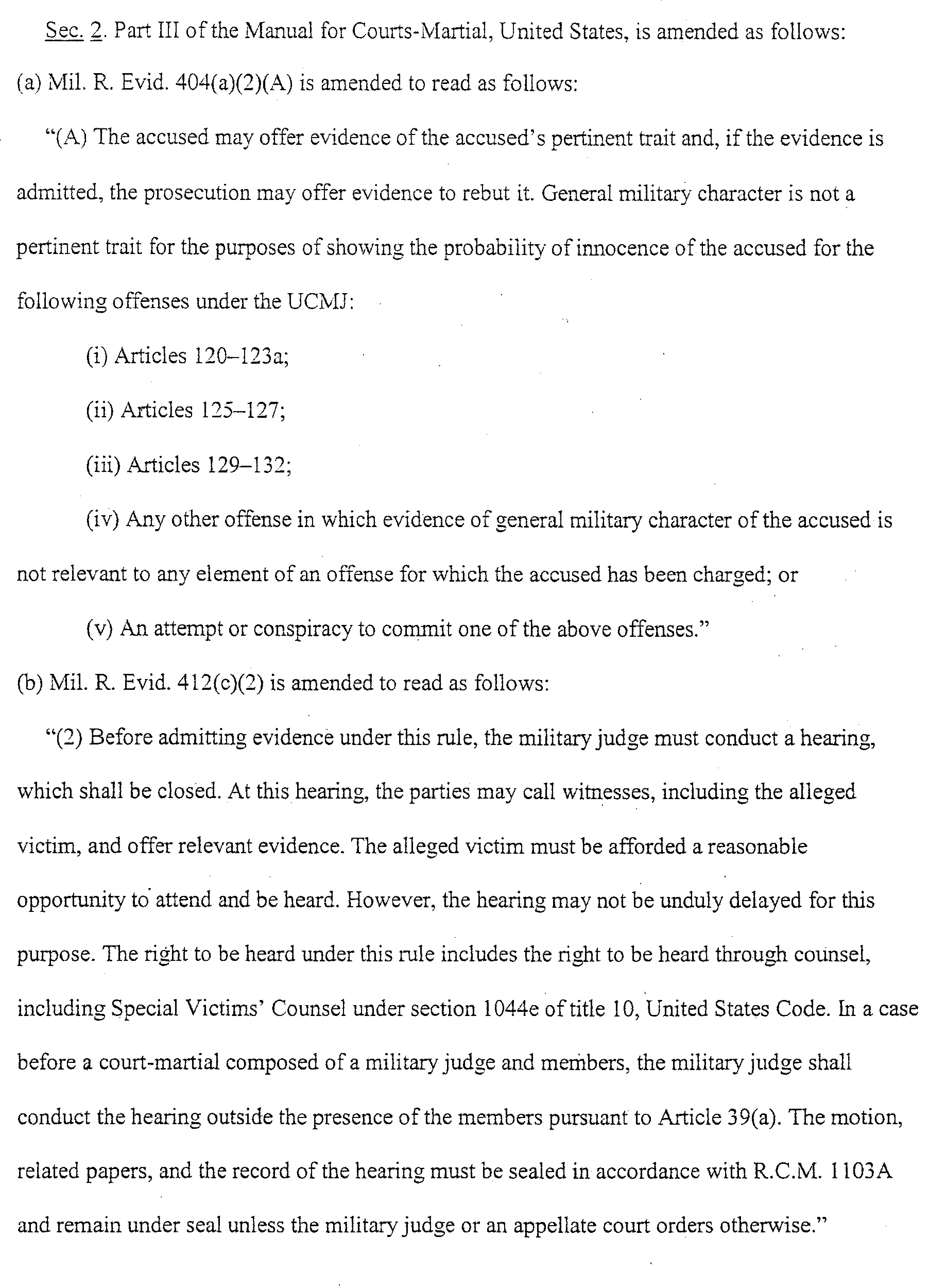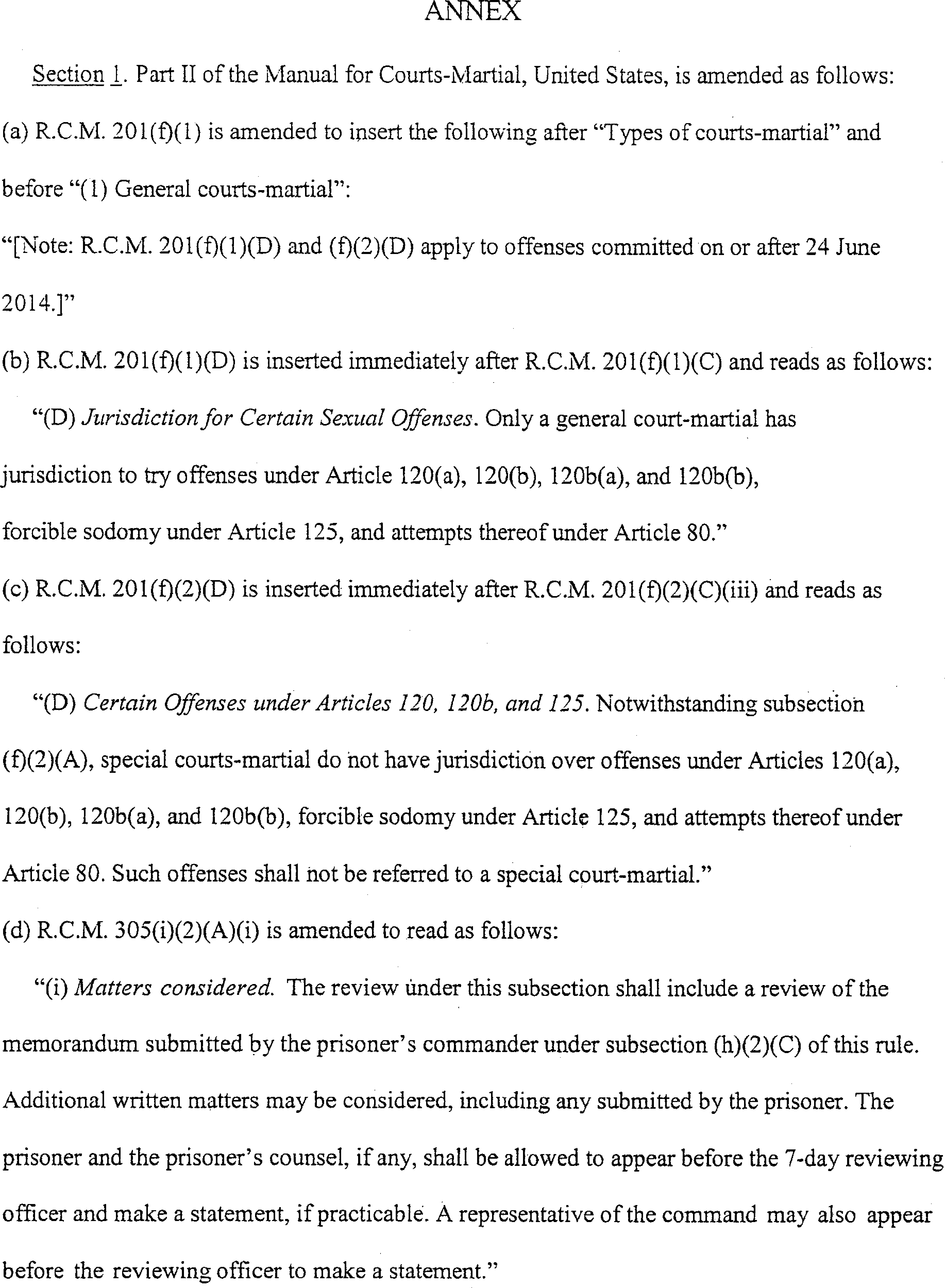 Section 1 . Part II, Part III, and Part IV of the Manual for Courts-Martial, United States, are amended as described in the Annex attached and made a part of this order.