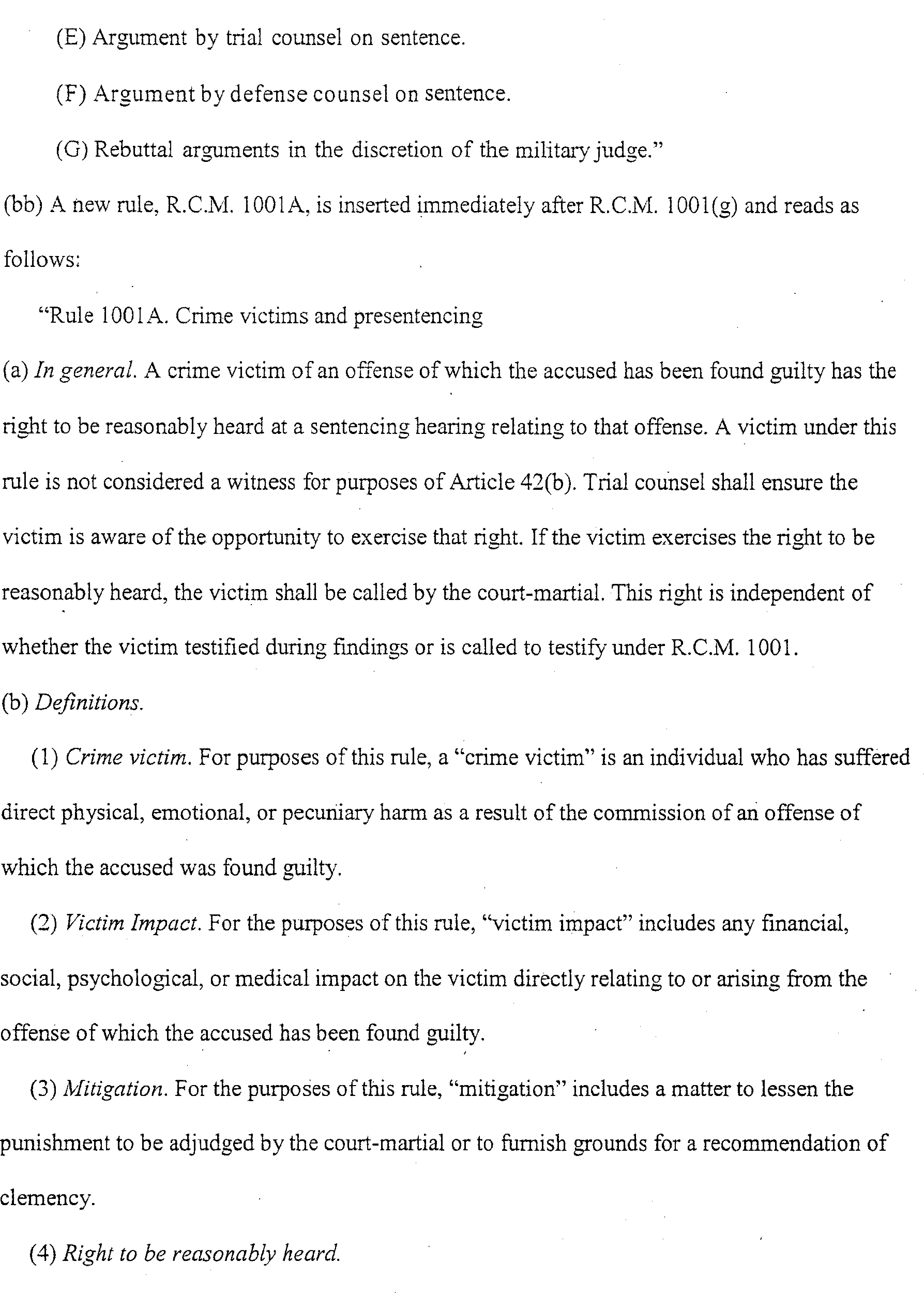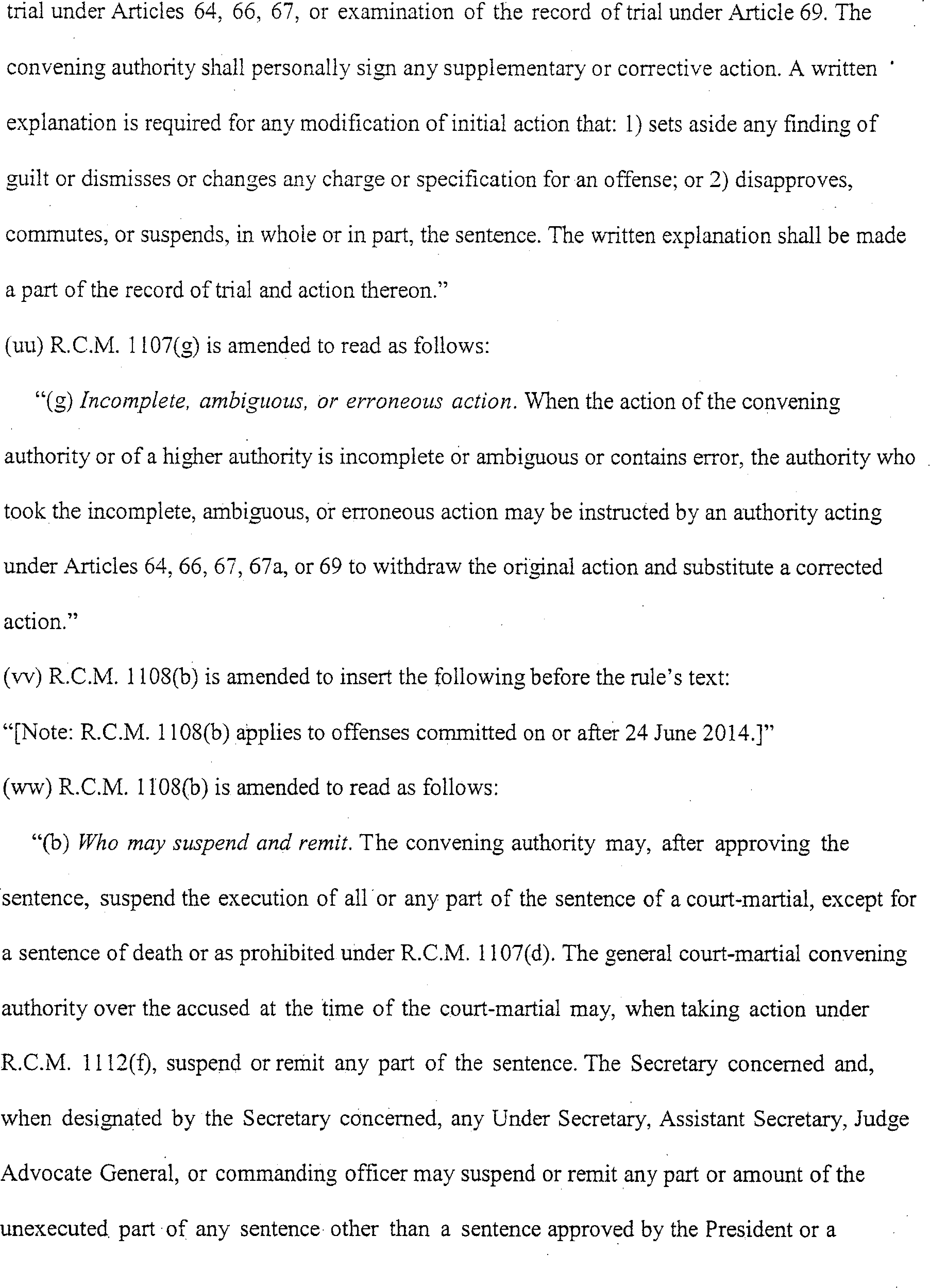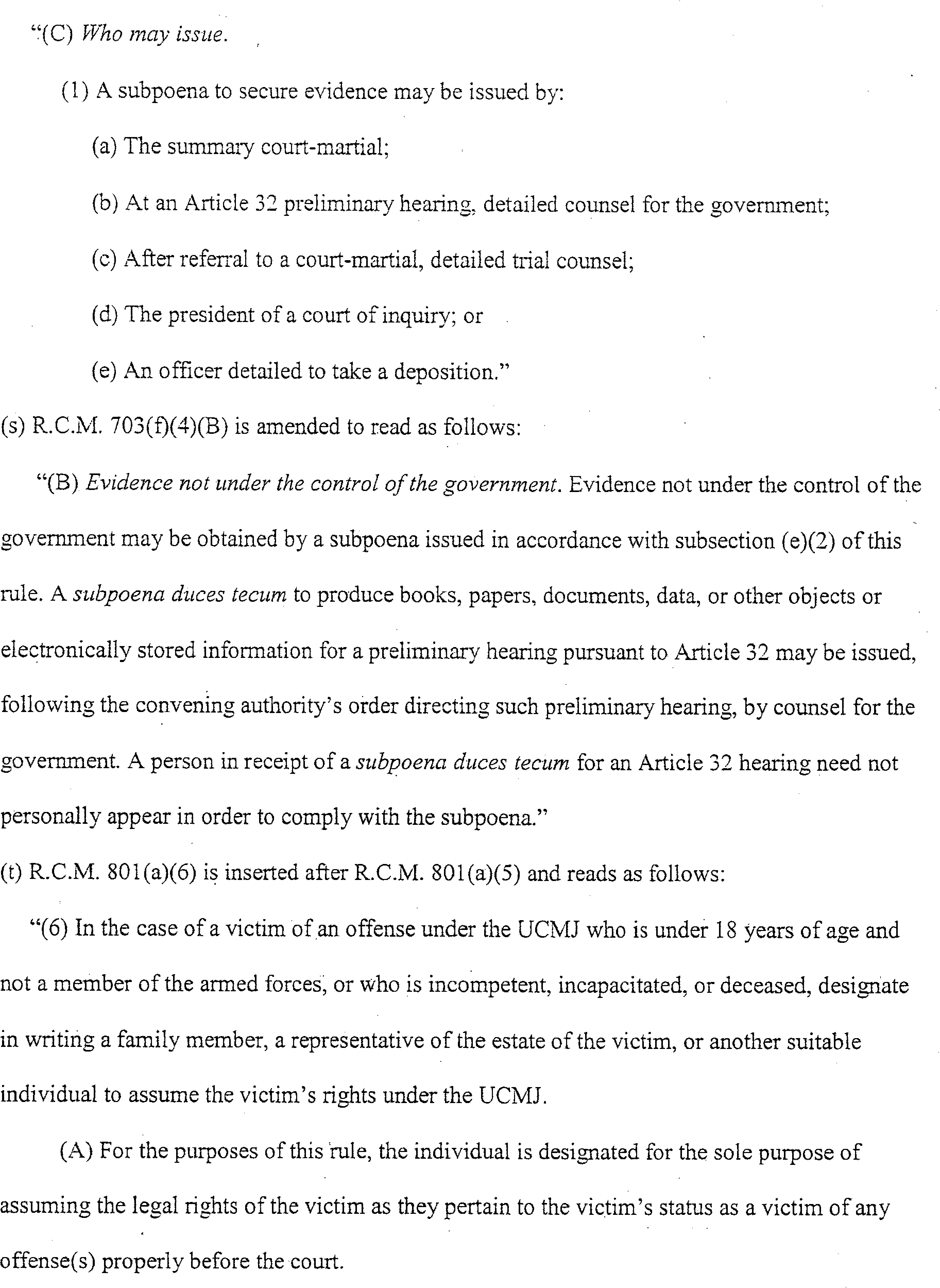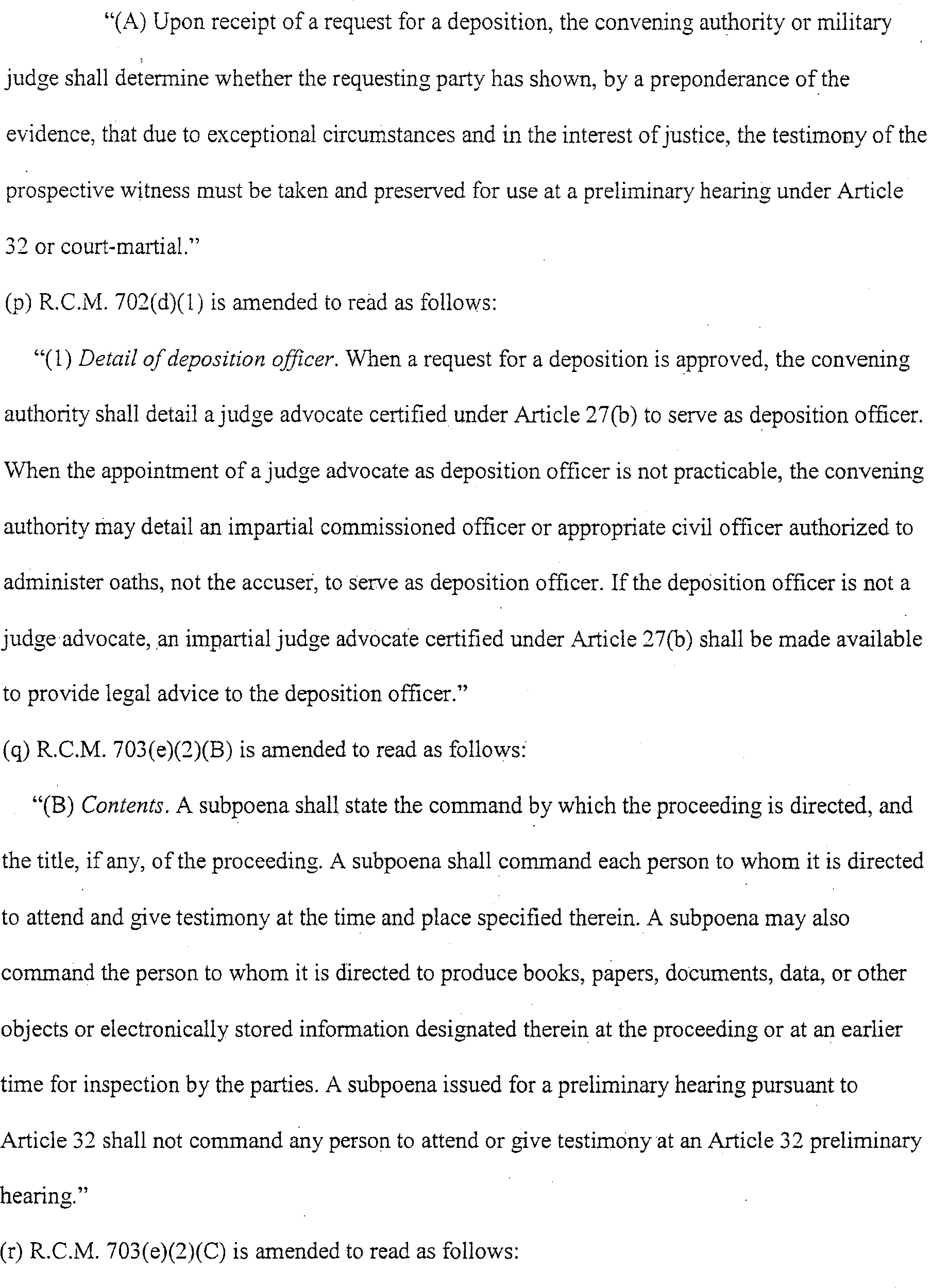 Section 1 . Part II, Part III, and Part IV of the Manual for Courts-Martial, United States, are amended as described in the Annex attached and made a part of this order.