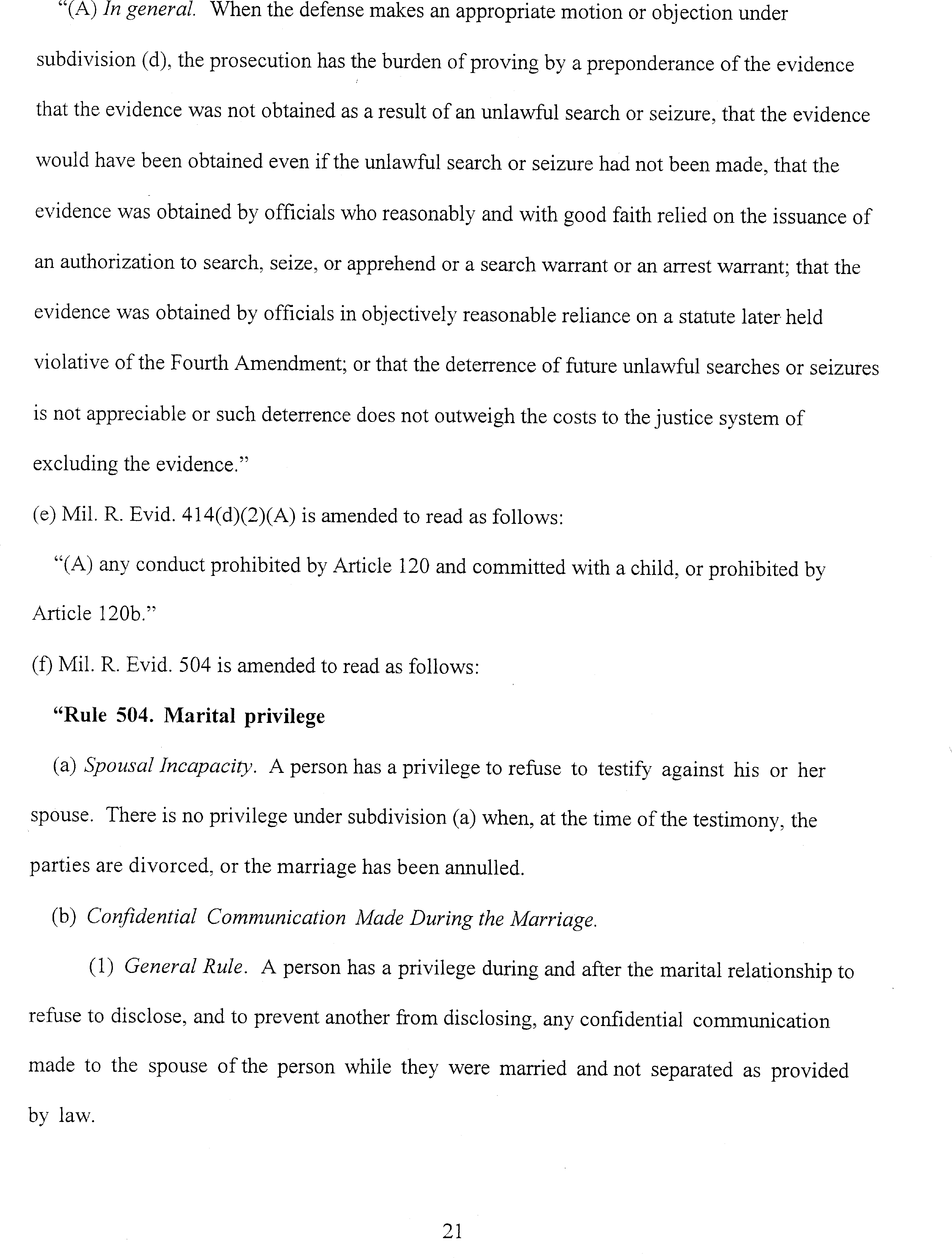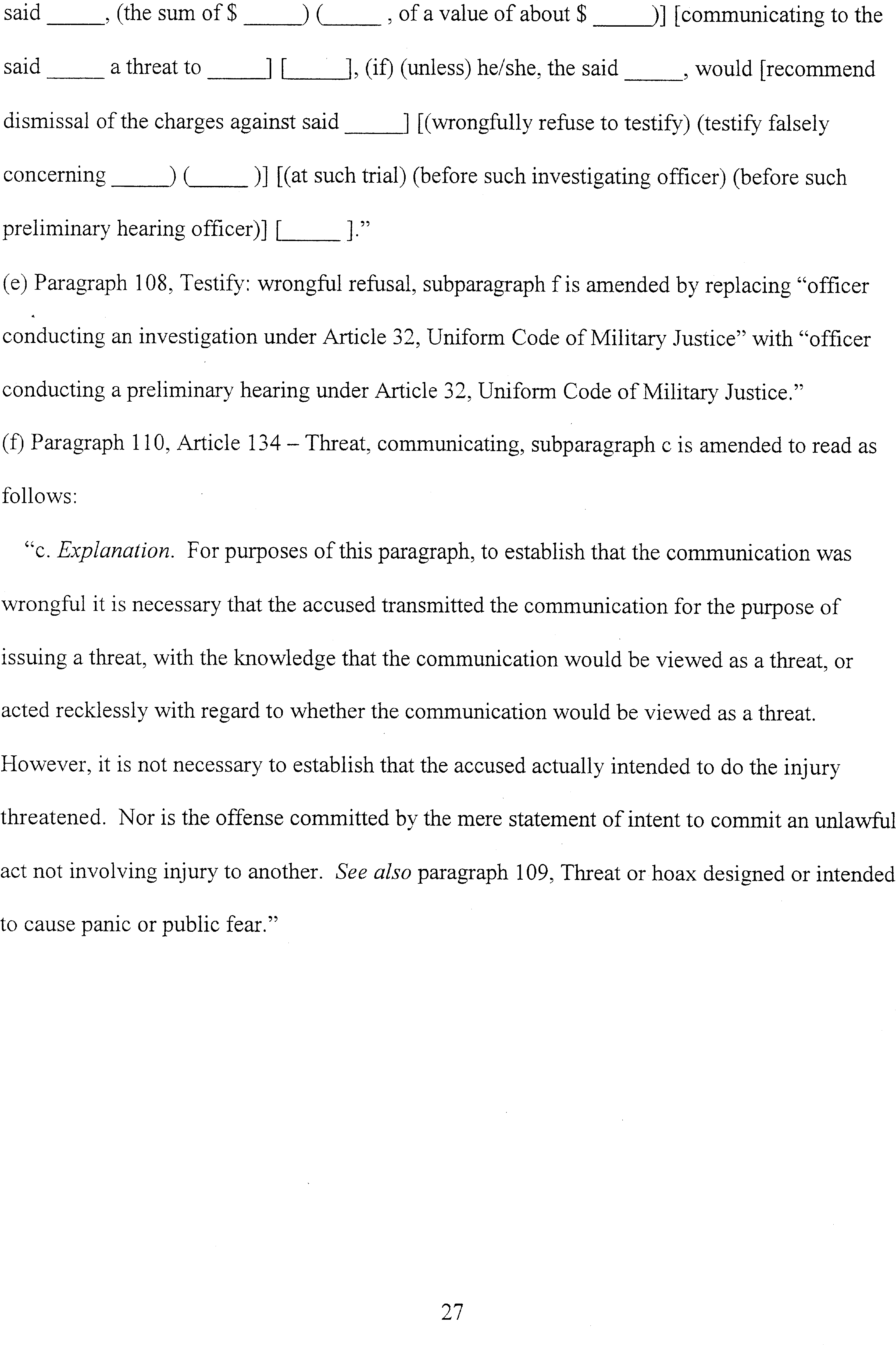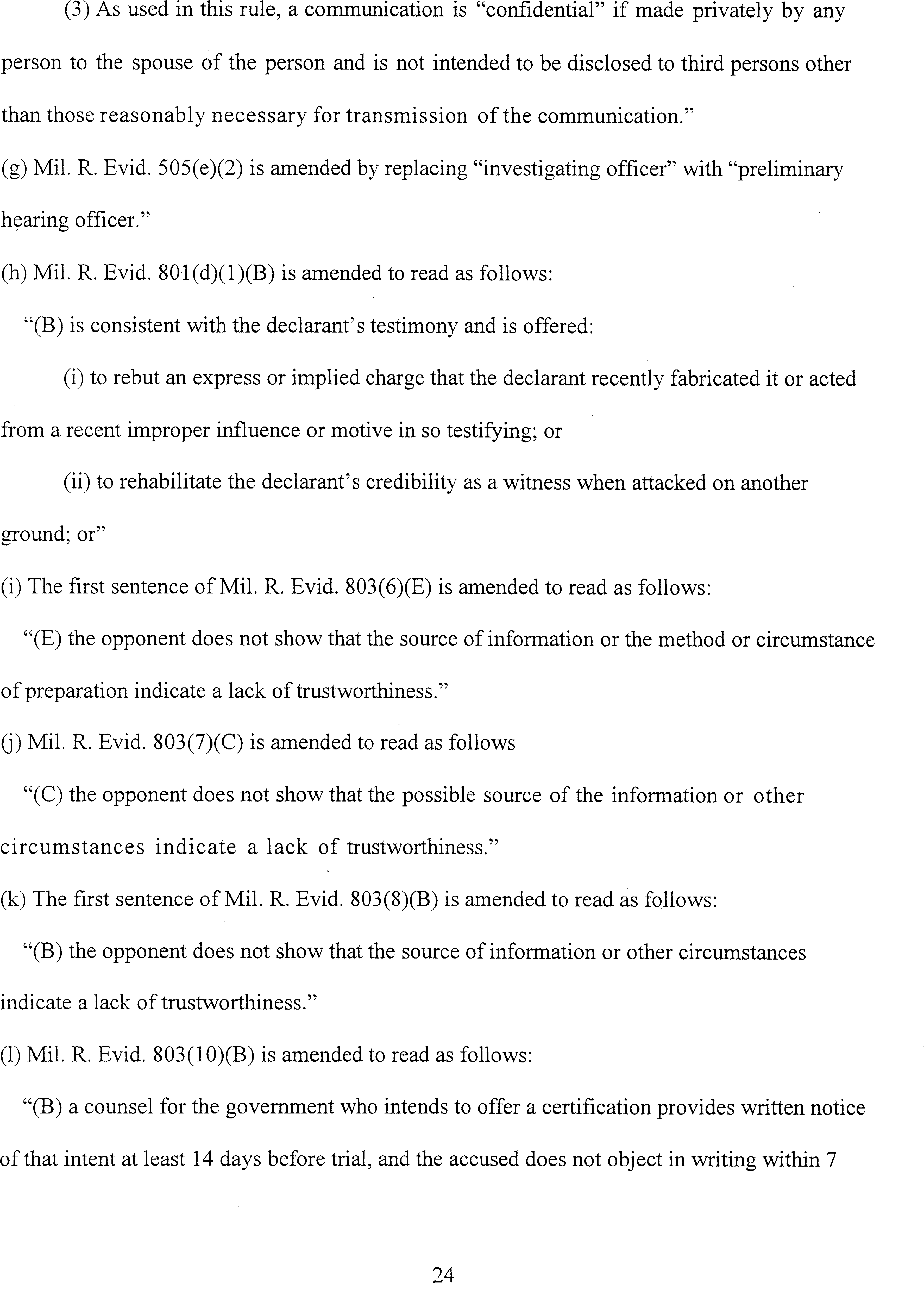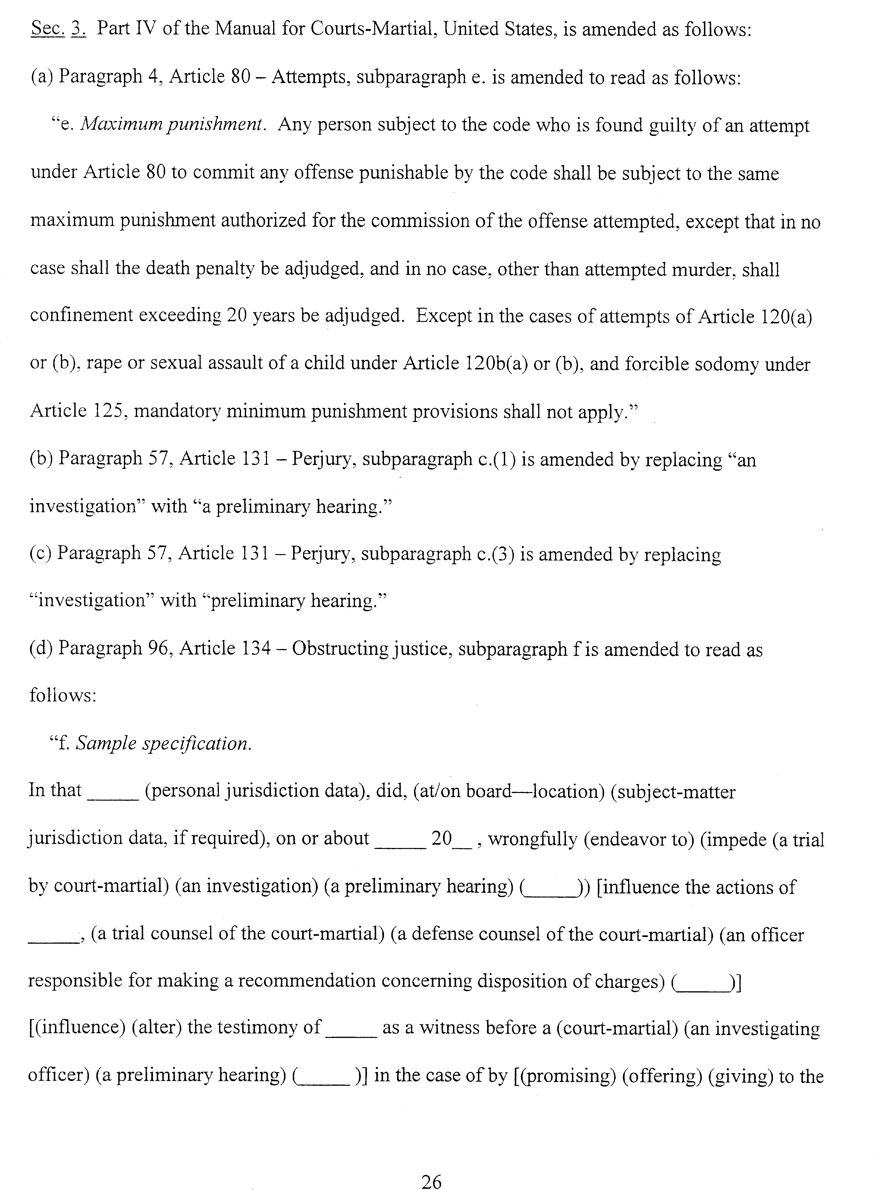 Section 1 . Part II, Part III, and Part IV of the Manual for Courts-Martial, United States, are amended as described in the Annex attached and made a part of this order.
