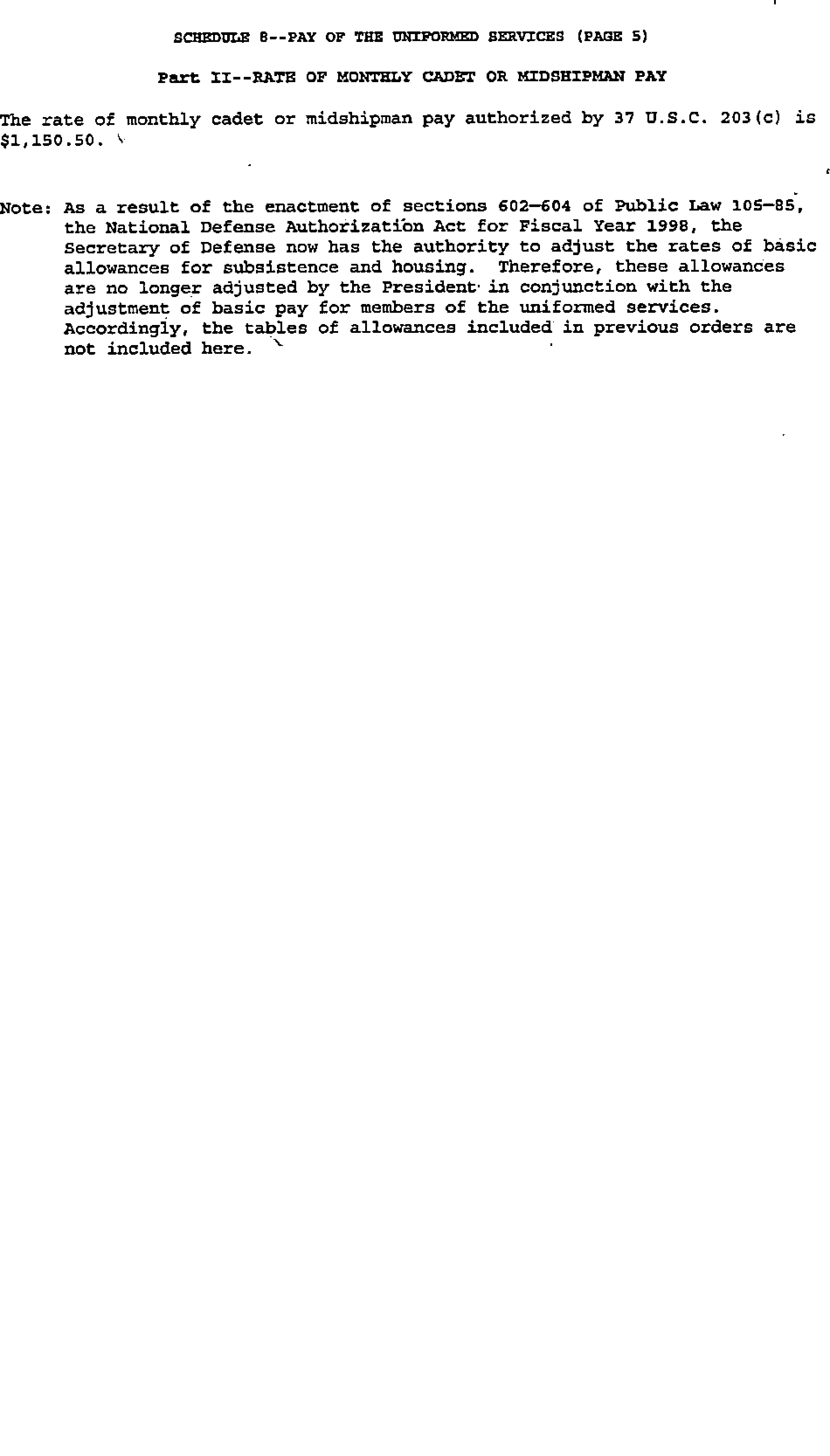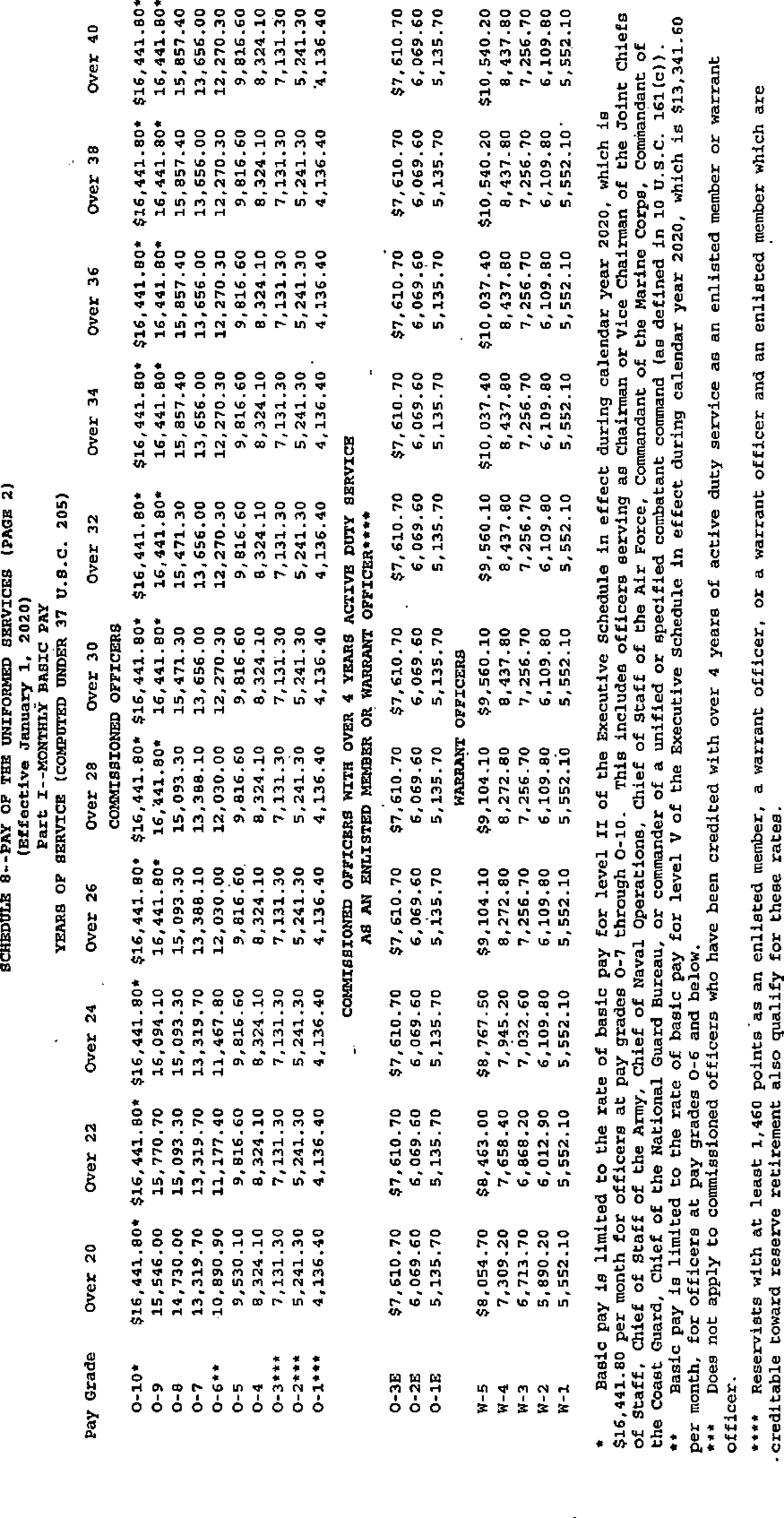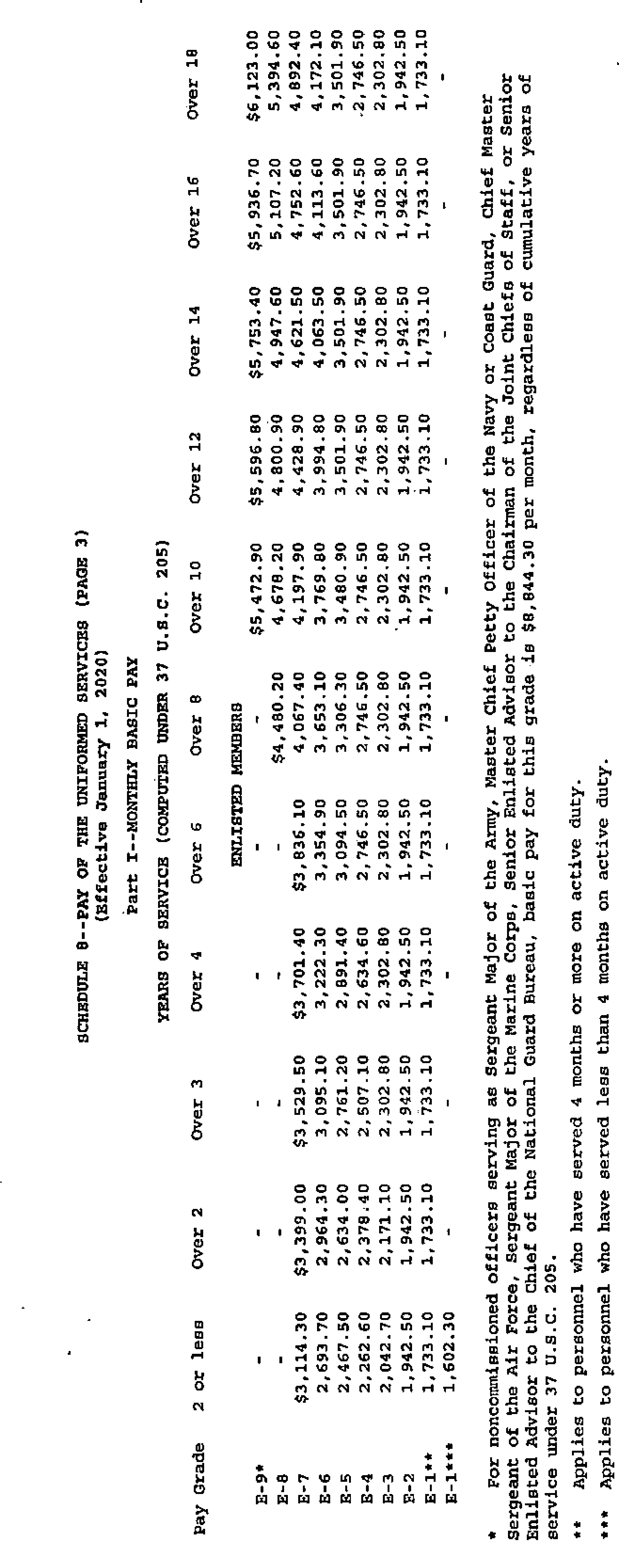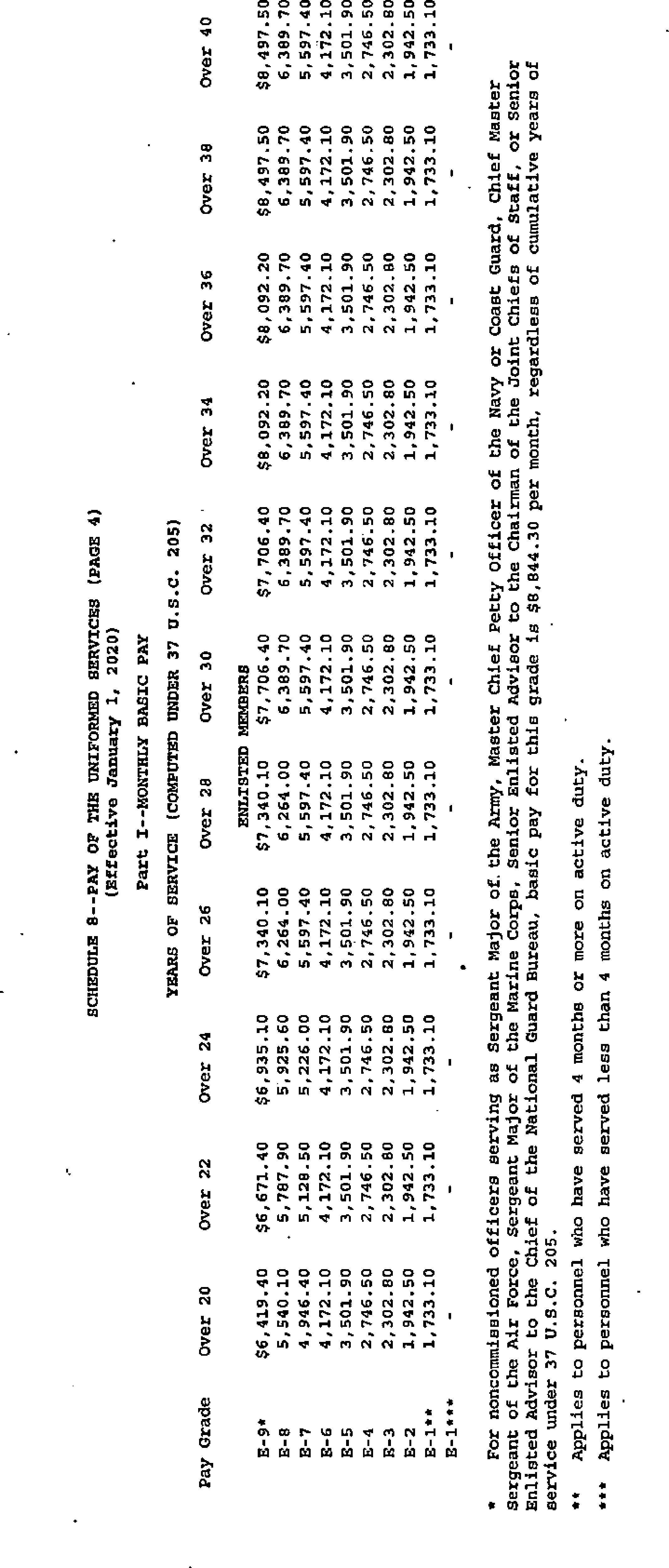 Sec. 4 . Uniformed Services. The rates of monthly basic pay (37 U.S.C. 203(a)) for members of the uniformed services, as adjusted under 37 U.S.C. 1009, and the rate of monthly cadet or midshipman pay (37 U.S.C. 203(c)) are set forth on Schedule 8 attached hereto and made a part hereof.