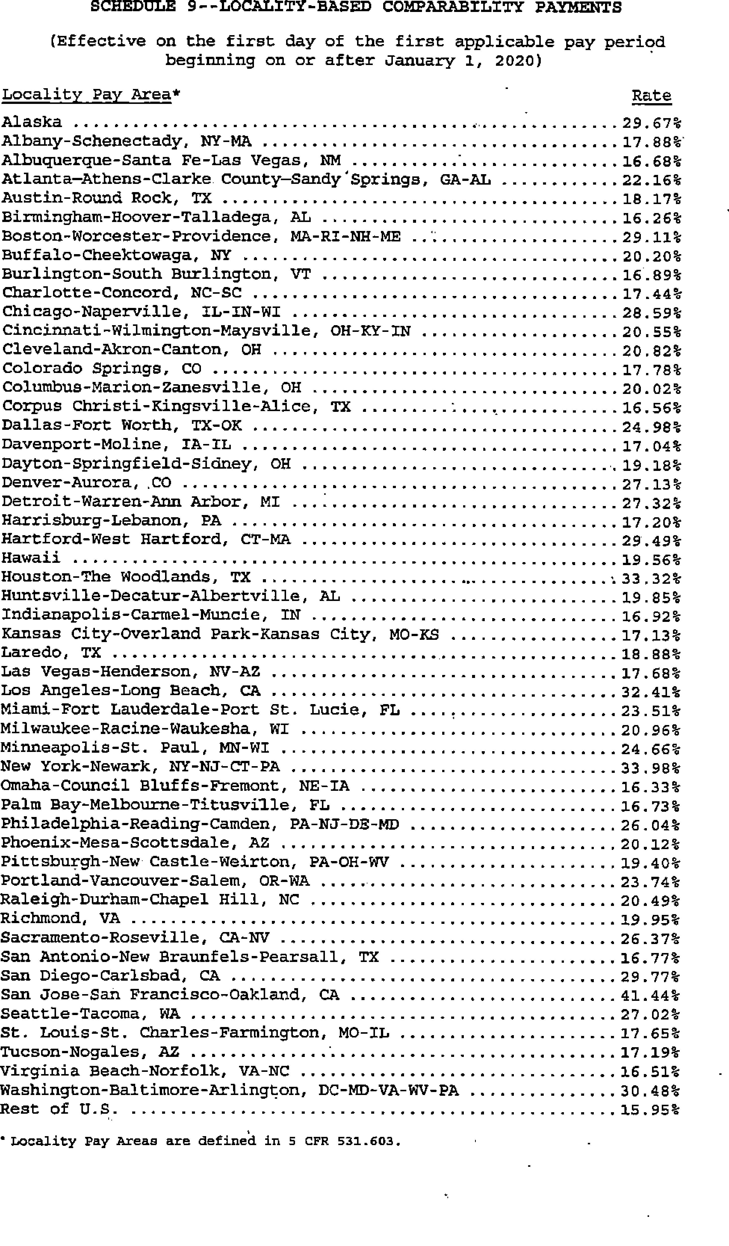 (a) Pursuant to sections 5304 and 5304a of title 5, United States Code, and section 748 of division C of the Consolidated Appropriations Act, 2020, locality-based comparability payments shall be paid in accordance with Schedule 9 attached hereto and made a part hereof.