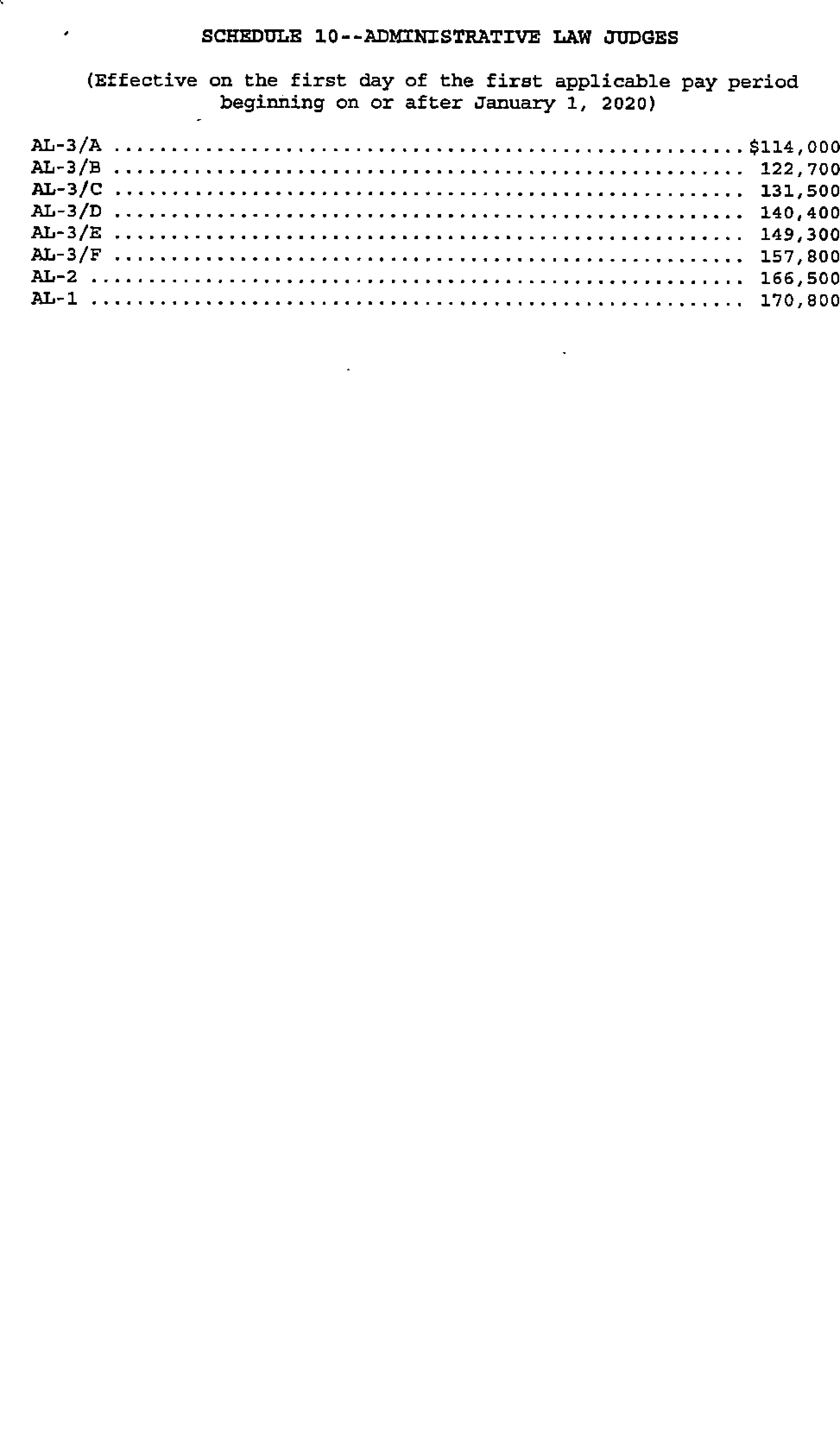 Sec. 6 . Administrative Law Judges. Pursuant to section 5372 of title 5, United States Code, the rates of basic pay for administrative law judges are set forth on Schedule 10 attached hereto and made a part hereof.