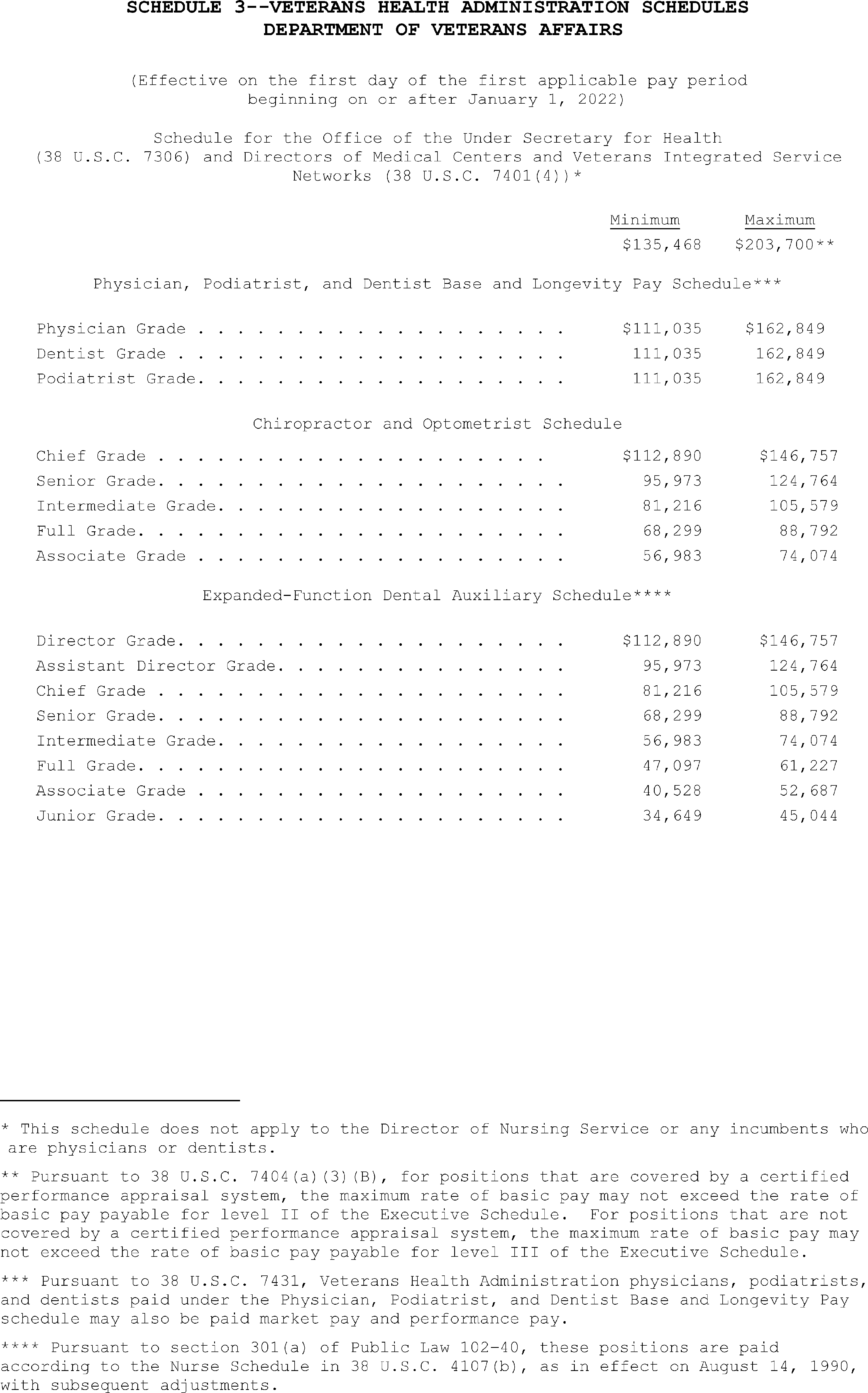 (c) The schedules for the Veterans Health Administration of the Department of Veterans Affairs (38 U.S.C. 7306, 7404; section 301(a) of Public Law 102-40) at Schedule 3.
